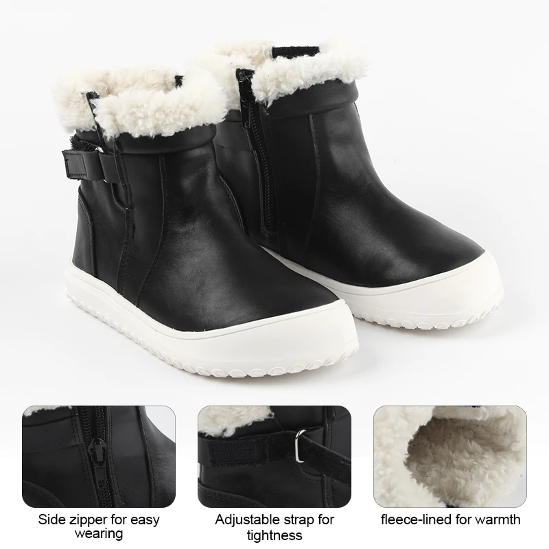 Babyhappy Plush Linings Warmer Strap Design Shoes Barefoot Rubber Soles Wholesale Kids Boots