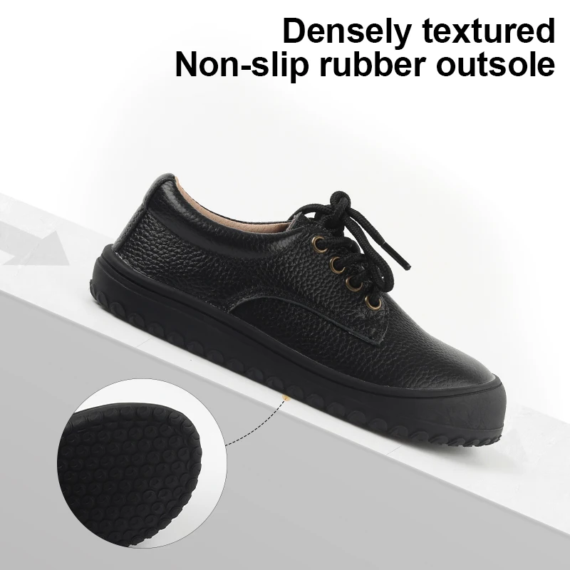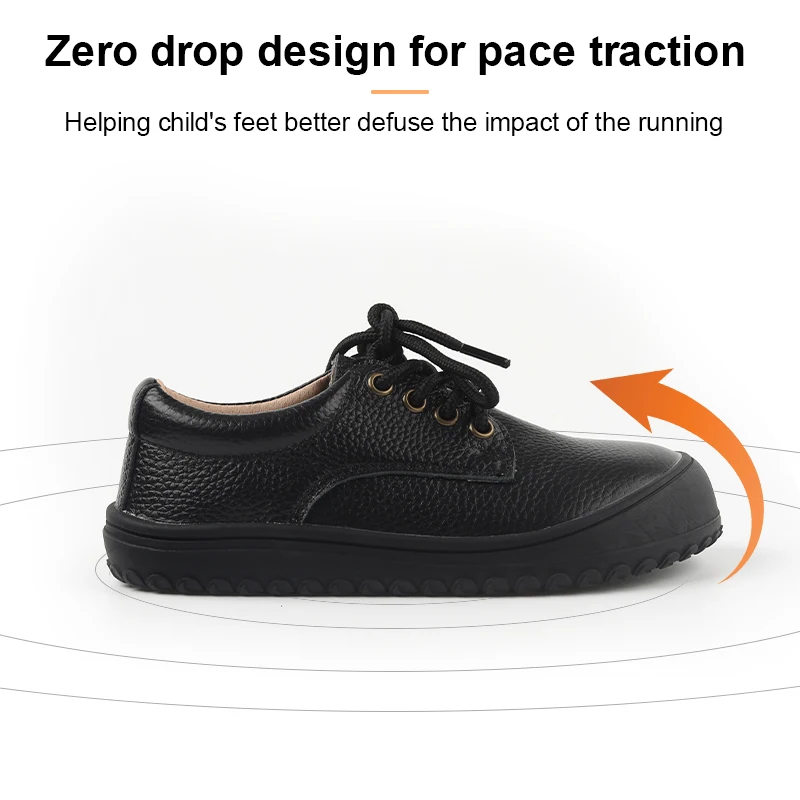 Babyhappy New Design Boys Girls Student Formal Leather Dress Shoes Kids Ergonomic Design Lace up Black School Shoes