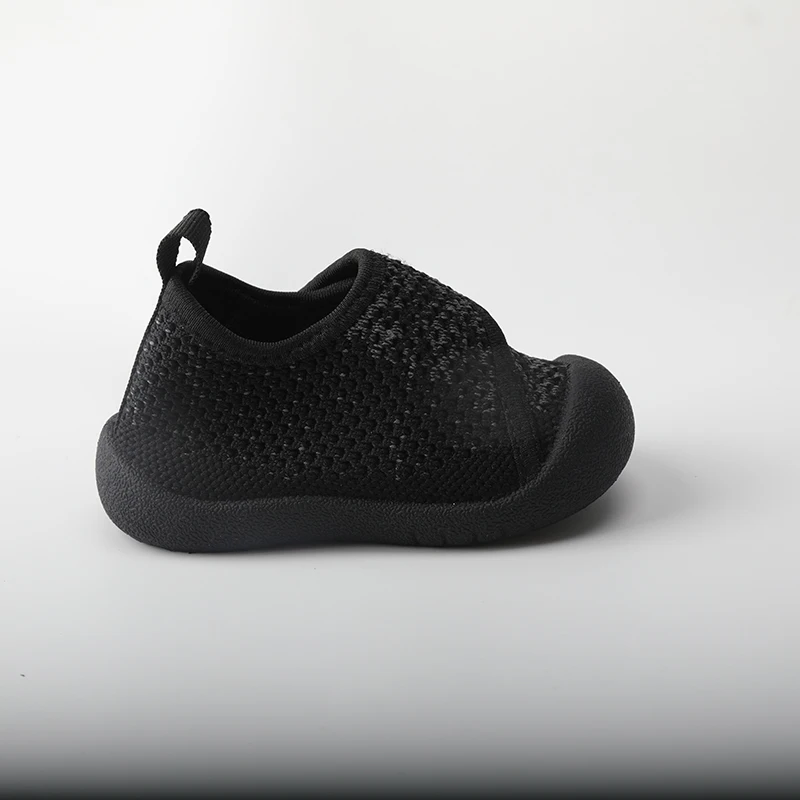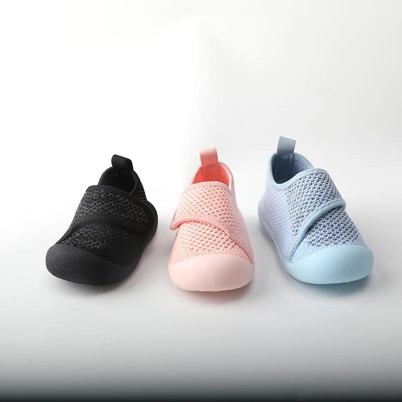 New Style Factory Rubber Flying Woven Soft Toddler Velcro Shoes Mesh Breathable Solid Crochet Baby Shoes