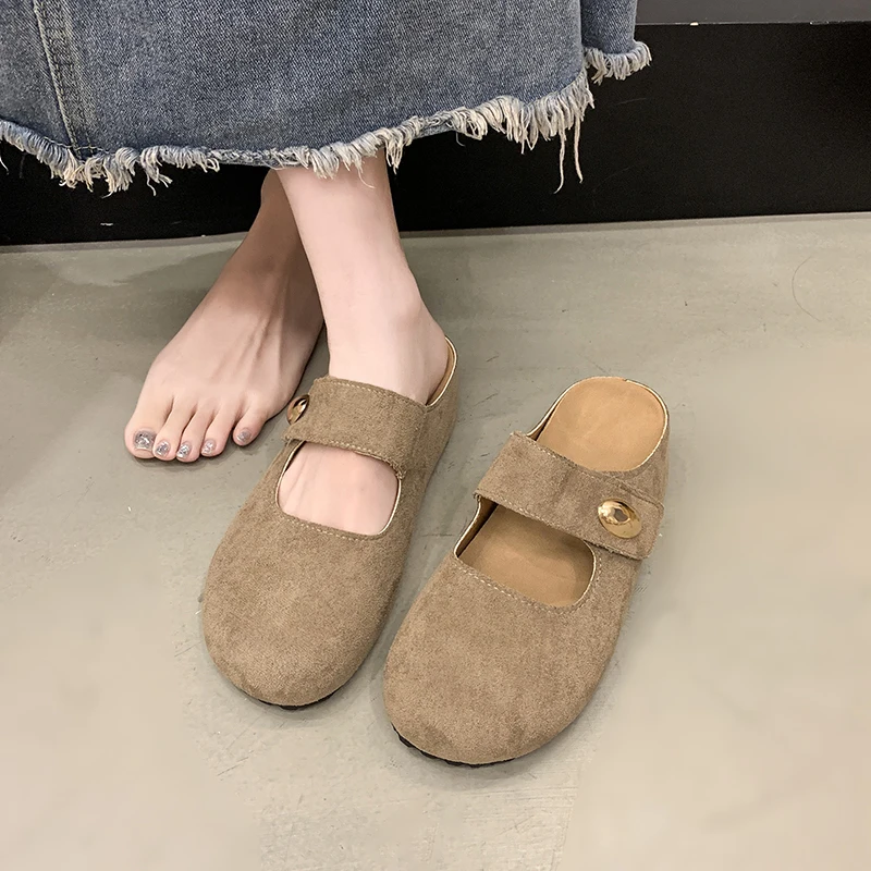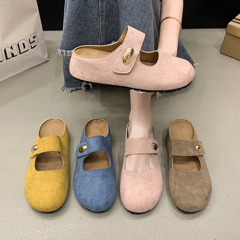 Baotou 2026 Summer New Foreign Style Outdoor Sports for Women Half Slip-On Thick Bottom Pedal Small Golden Bean Boken Inner