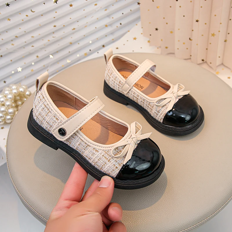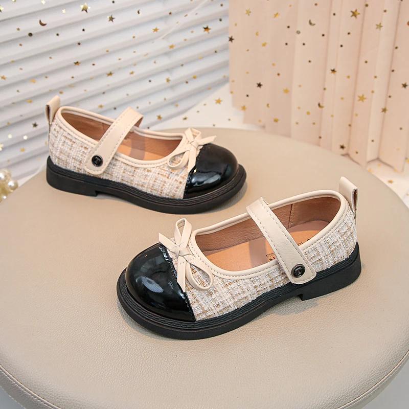 Fashionable Retro Flat Design Girls' Small Shoes Soft Rubber Insole Slip-On Logo Waterproof for Autumn Summer Walking