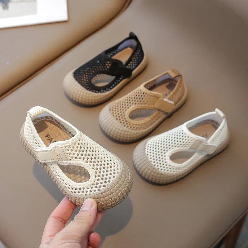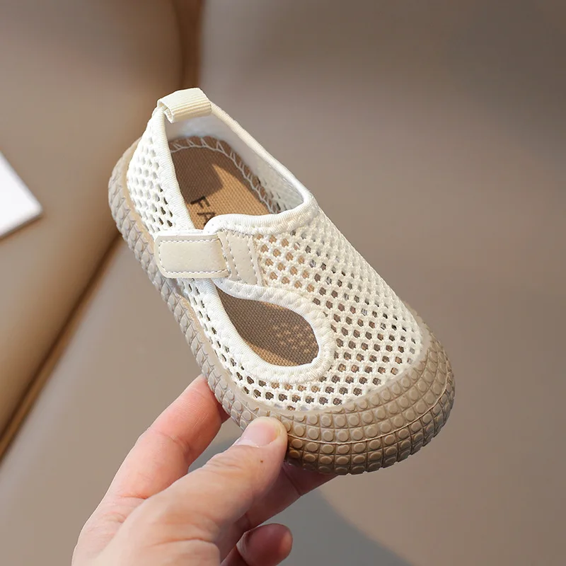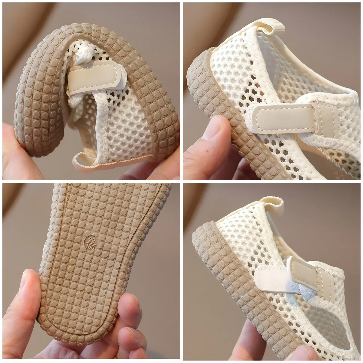 White Indoor/Outdoor Summer Sandals for Boys Girls Children's Mesh Dance Shoes Slip-On Rubber Midsole Outsole-Kindergarten Style