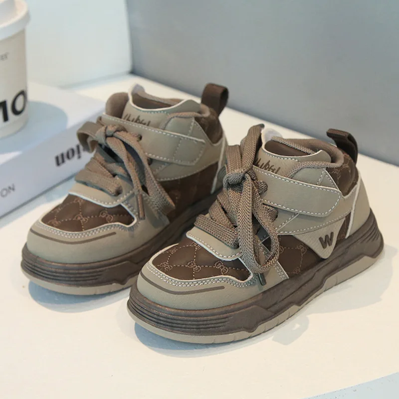 2026 High-Top Casual Sports Sneakers for Boys and Girls Soft-Soled Bread Shoes with Lace-Up Closure for Spring Fall Autumn
