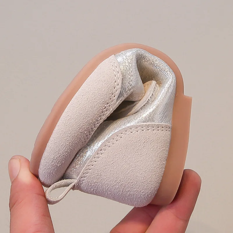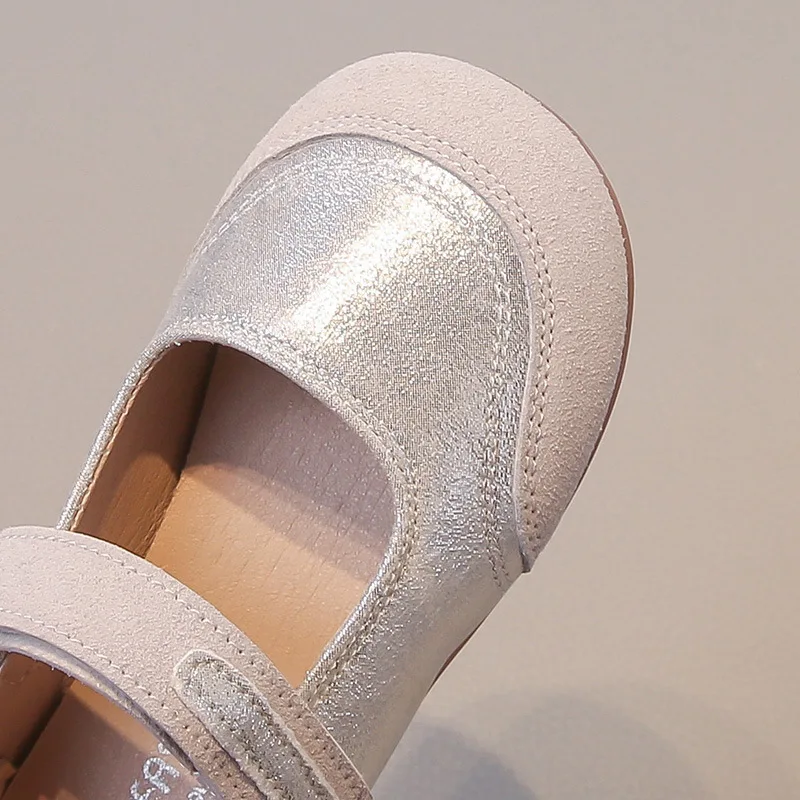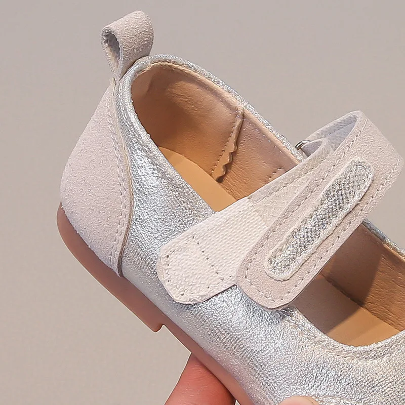 2026 Silver Girls' Princess Style Mary Jane Beanie Flats Soft-Soled Dress Shoes in Small Leather for Kids