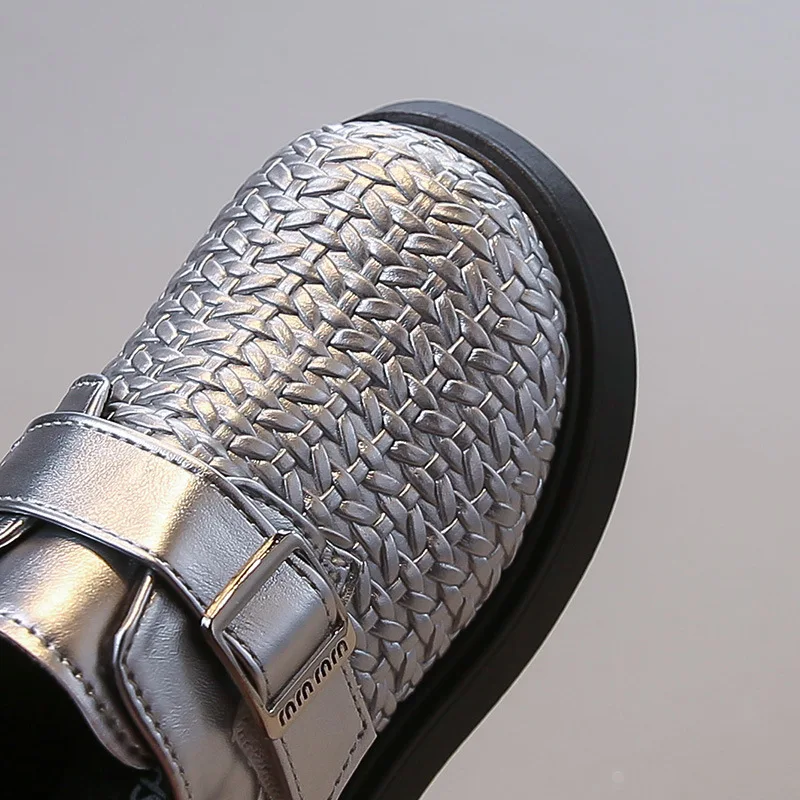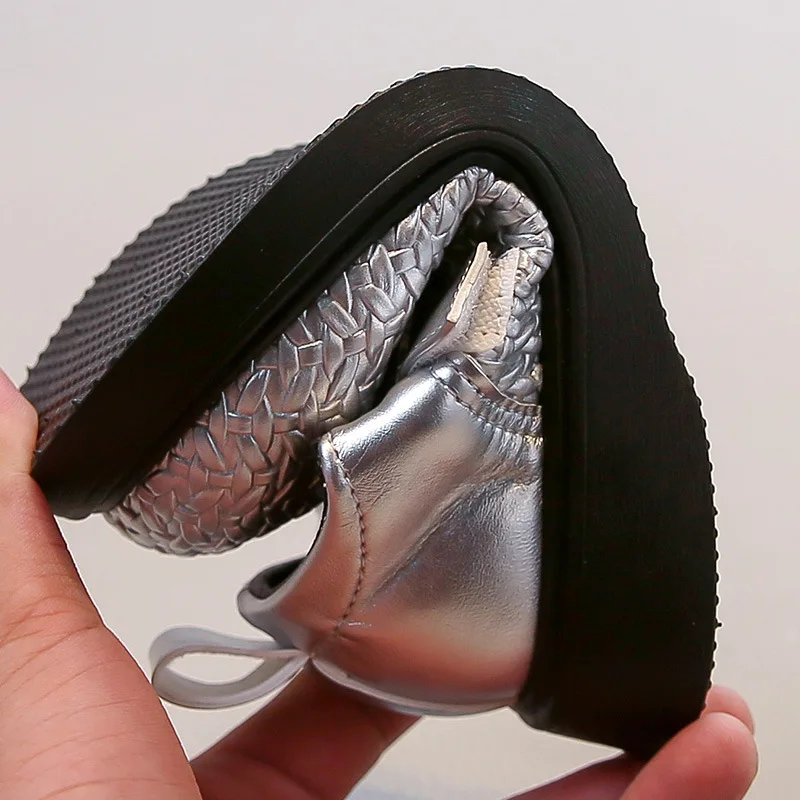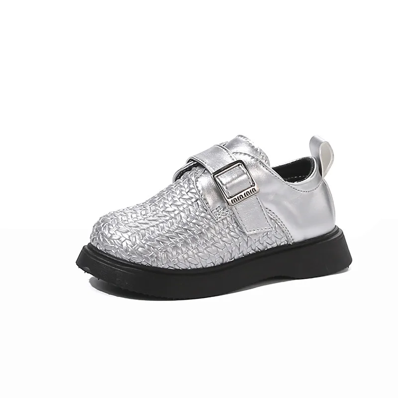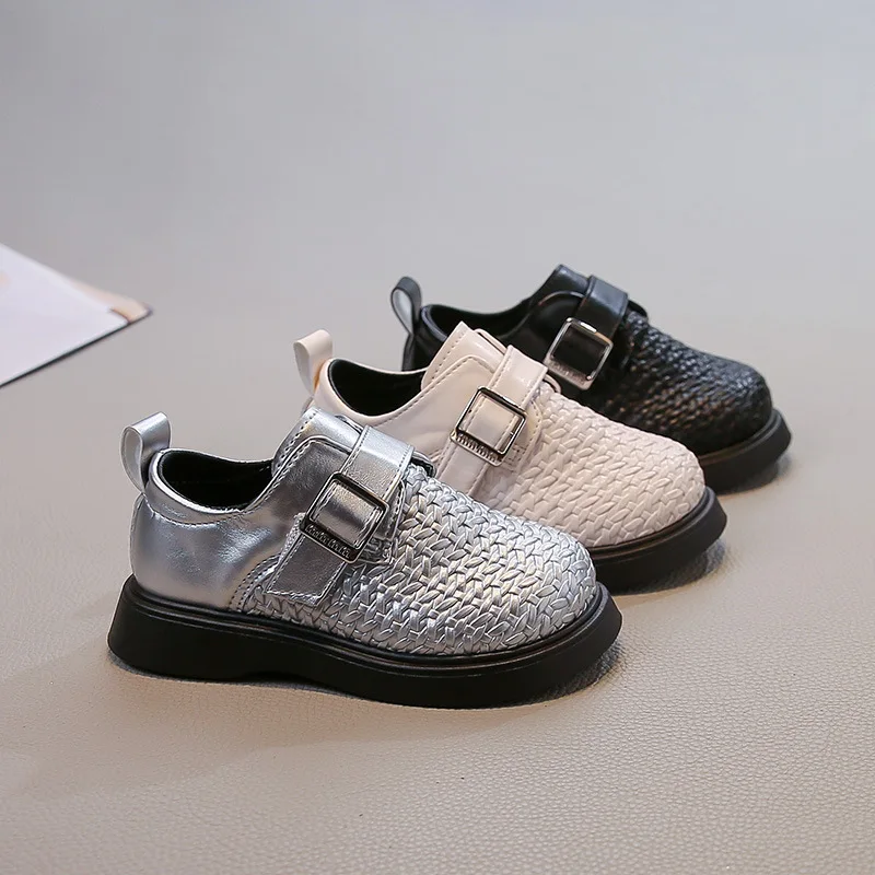 Pafsing 2026 Autumn British Princess Soft-Soled Ultra-Light Microfiber Leather Flats Girls Small Size Woven Slip-On Adjustable