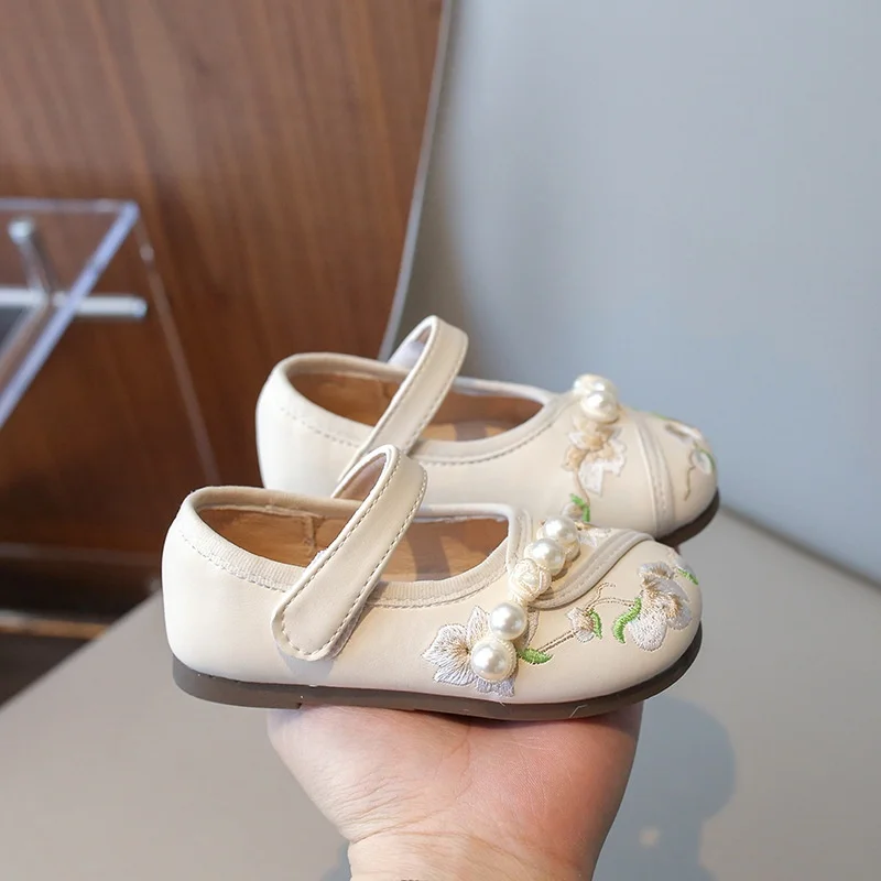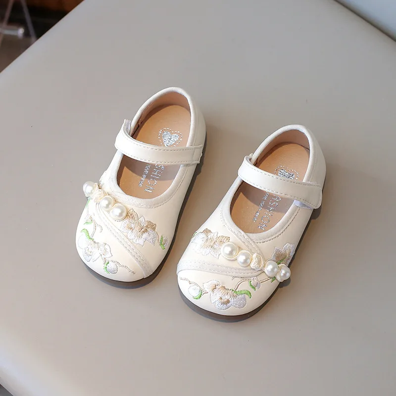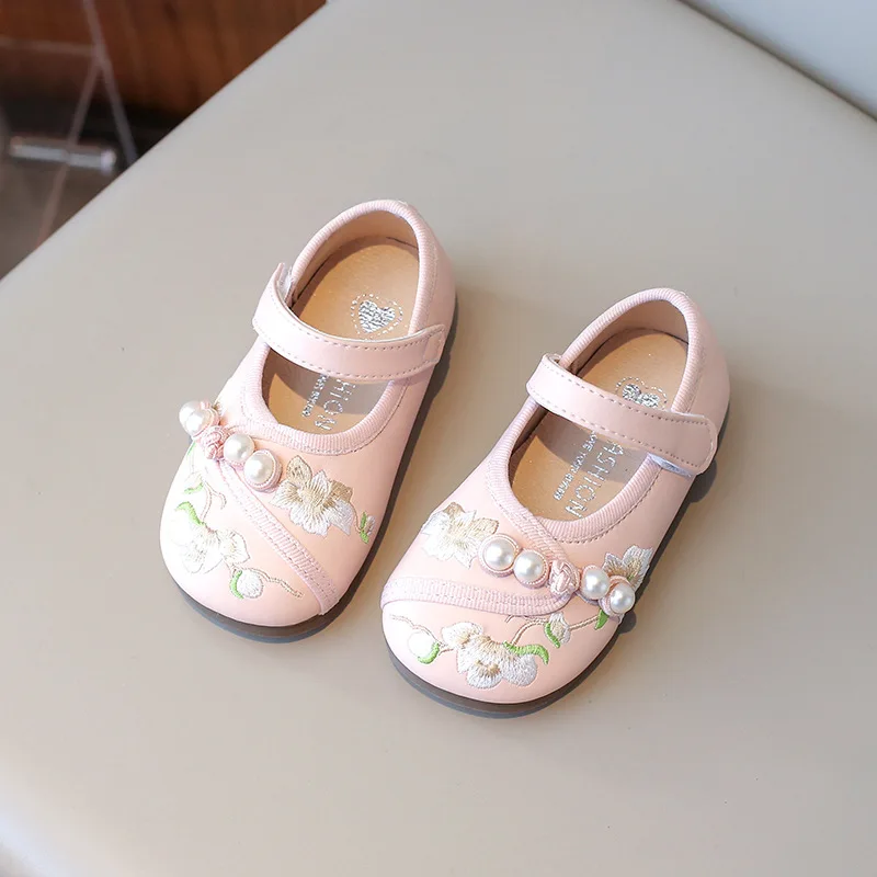 Girls' Hanfu Style Crib Shoes Spring National Style Small Leather Floral Print PU Upper Slip-On New Chinese Style Children