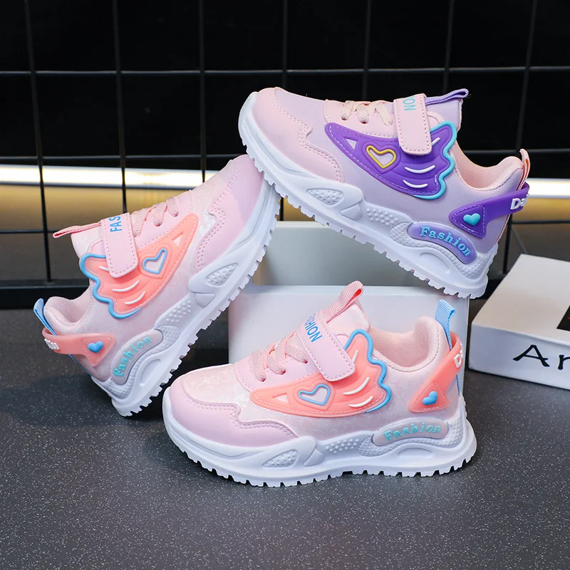 2026 New Kidsren's Sports Shoes Girls' Leather Casual Running Shoes Lightweight Breathable Student Girls' Middle Large Shoes