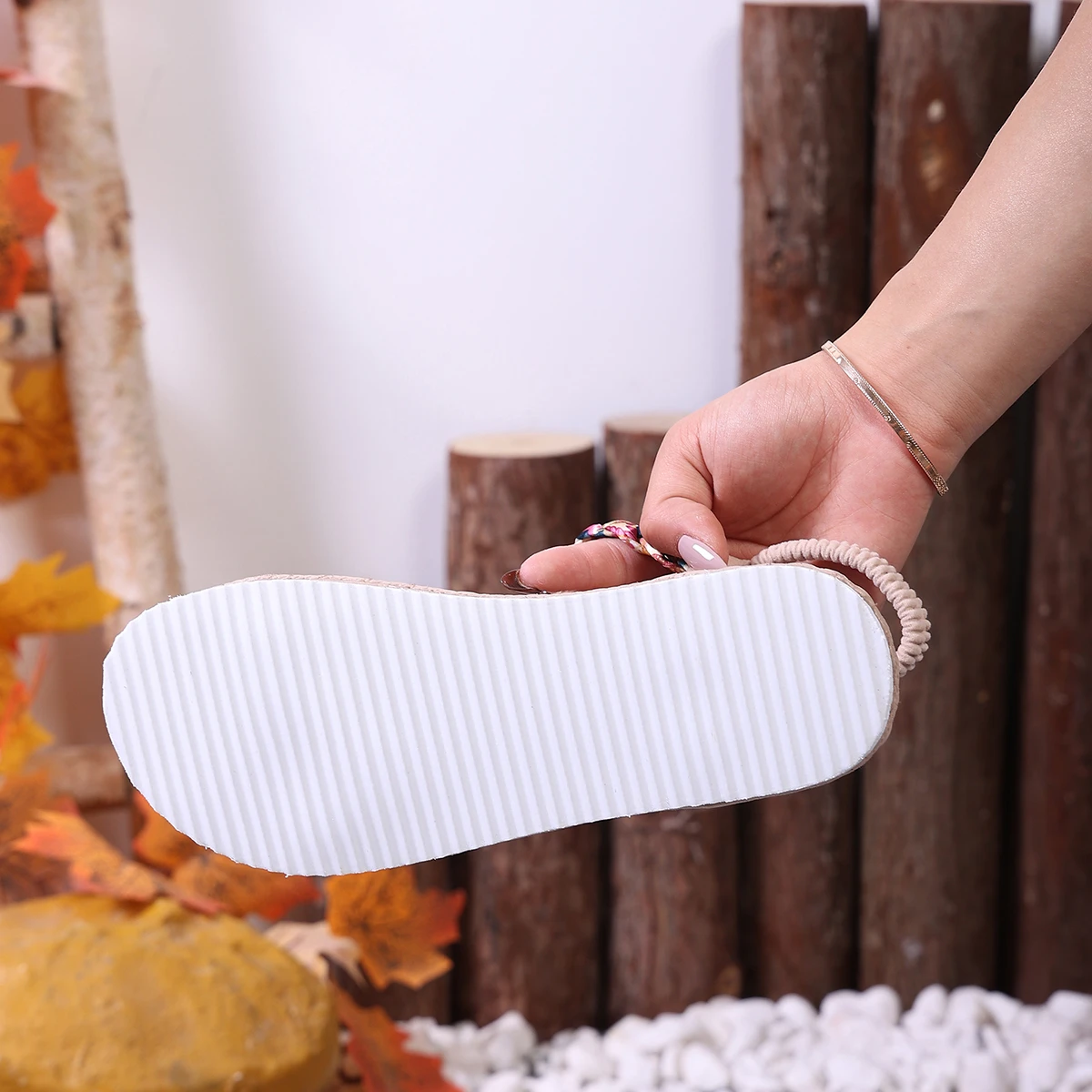 Ladies' Bohemian Style Fashion Trend Summer Peep Toe PU Upper Striped Sandals