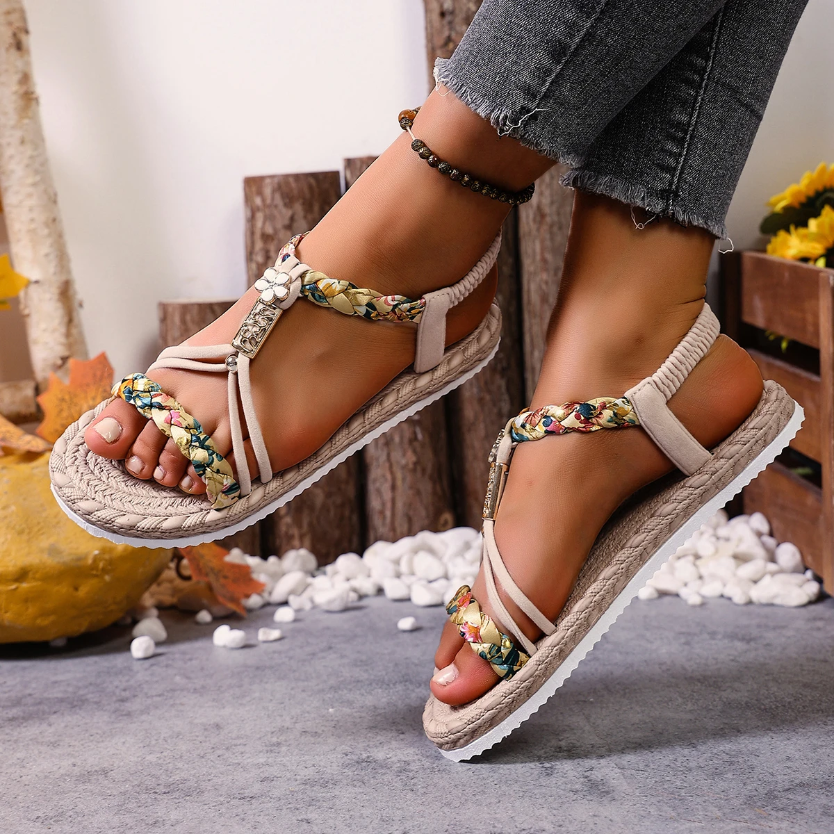2026 New Fashion Women's Summer Flat Bottom Roman Style Suede Upper Rubber Outsole Breathable Lightweight Shock Sandals