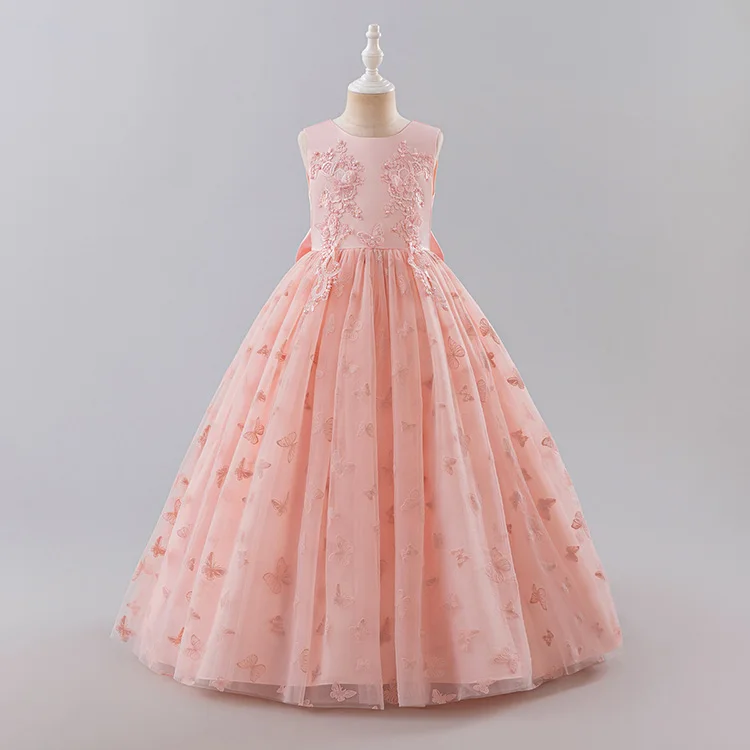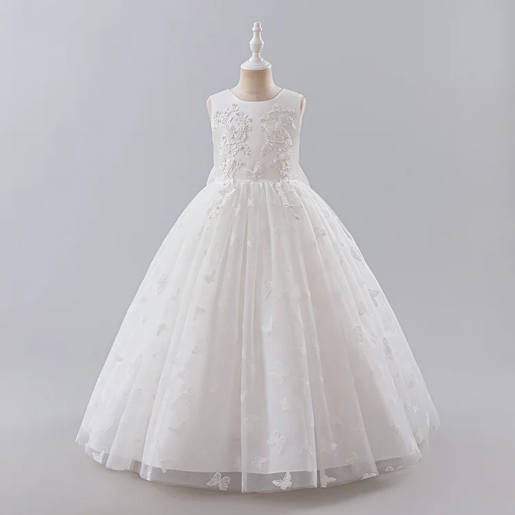 Children's Long Wedding Dress Fluffy Mesh Princess 3-13 Year Old Clothing Girls' Performance Dance Ball Gown Clothes for Kids