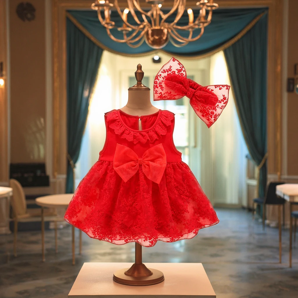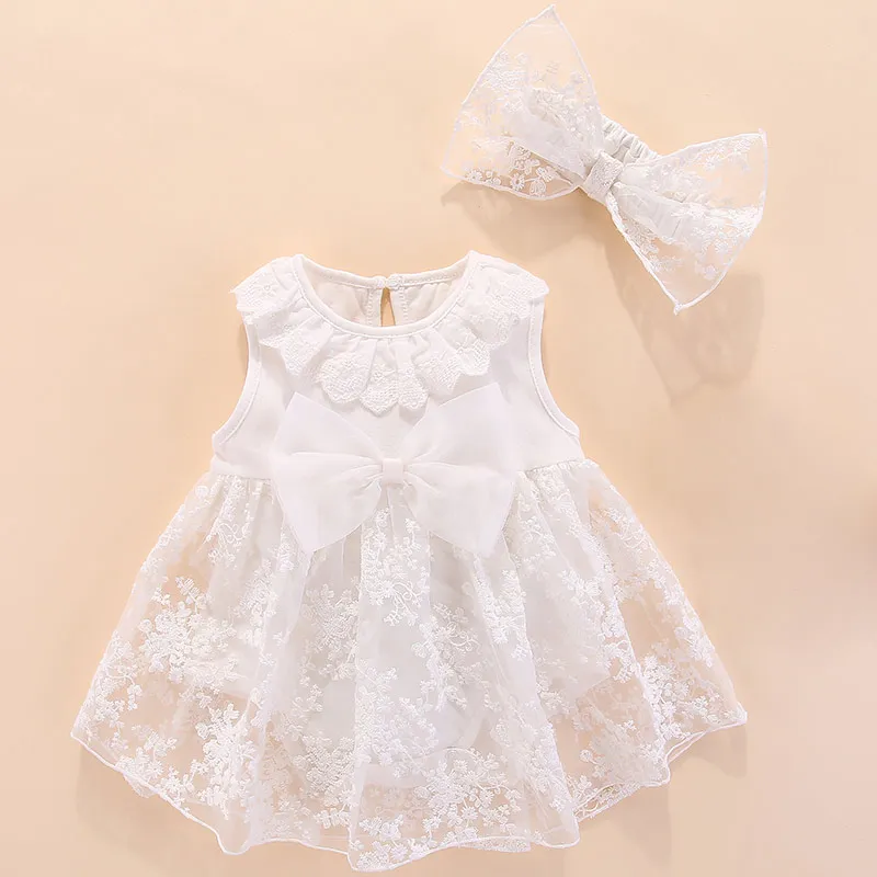 Toddler Baby Clothes Sleeveless Bow Wedding Gown Romper Skirt 2pcs Romper Girls Baby Dress and Hairband Clothes for Kids