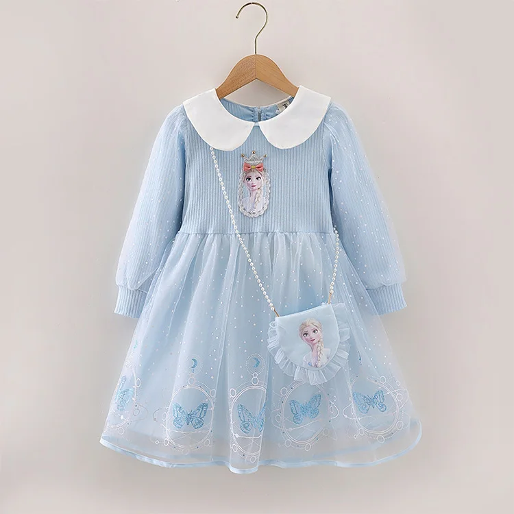 Girl Princess Dress Spring and Autumn New Stars Long-sleeved Gauze Skirt Korean Version Clothes for Kids