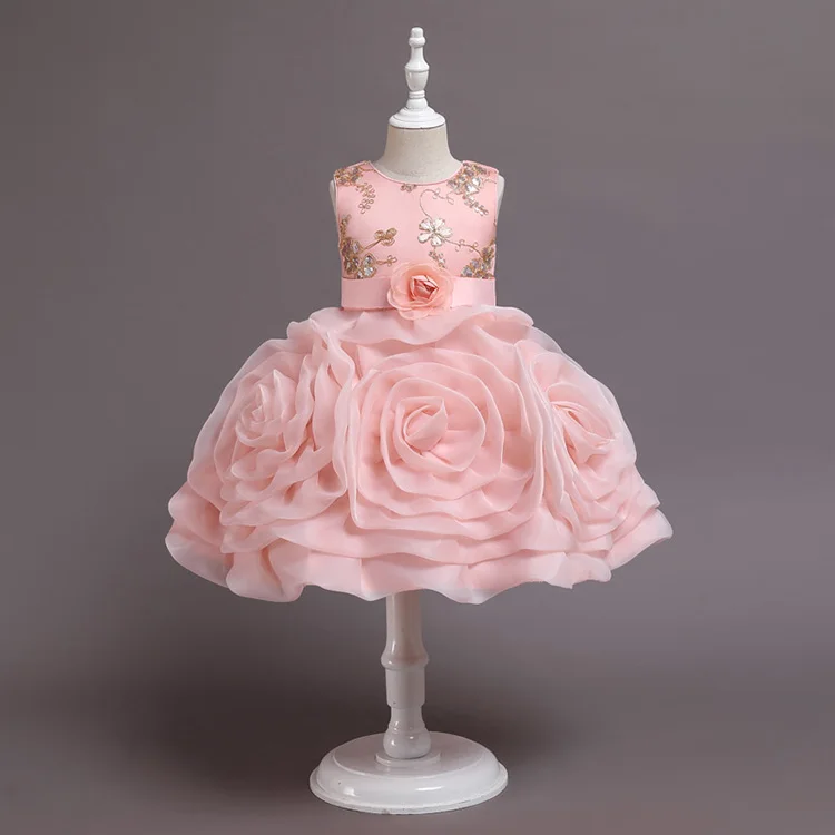 Wholesale Solid Satin Children's Dress Girl's Gown Princess Birthday Party Costume Lace Flower Tail 5-15 Years Breathable