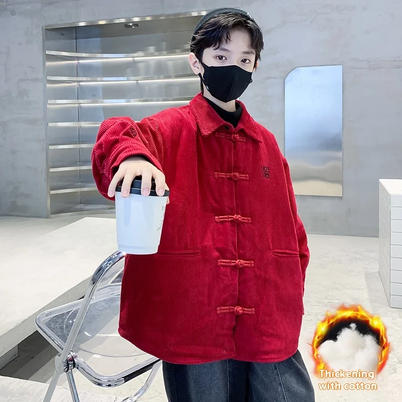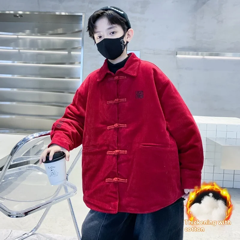 Boys' Red Quilted Tang Suit Jacket Autumn Winter Hanfu Children's Chinese Style for New Traditional Chinese Clothes for Kids