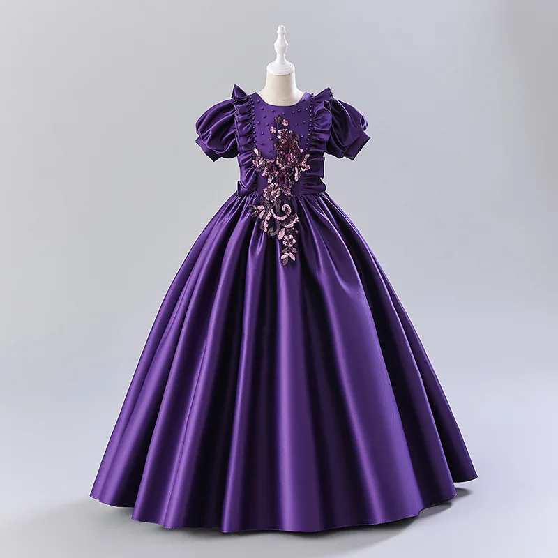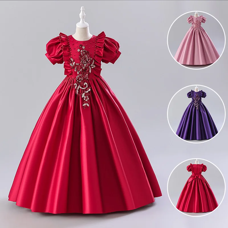 Princess Girls Communion Birthday Party Dance Performance Sequin Dress Girls Wedding Bridesmaid Party Dress Clothes for Kids
