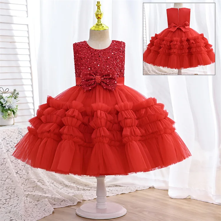 Girl Princess Four Seasons Universal Dress Gauze Skirt Bow Vest Elegant Dance Performance Shaggy Dress Clothes for Kids