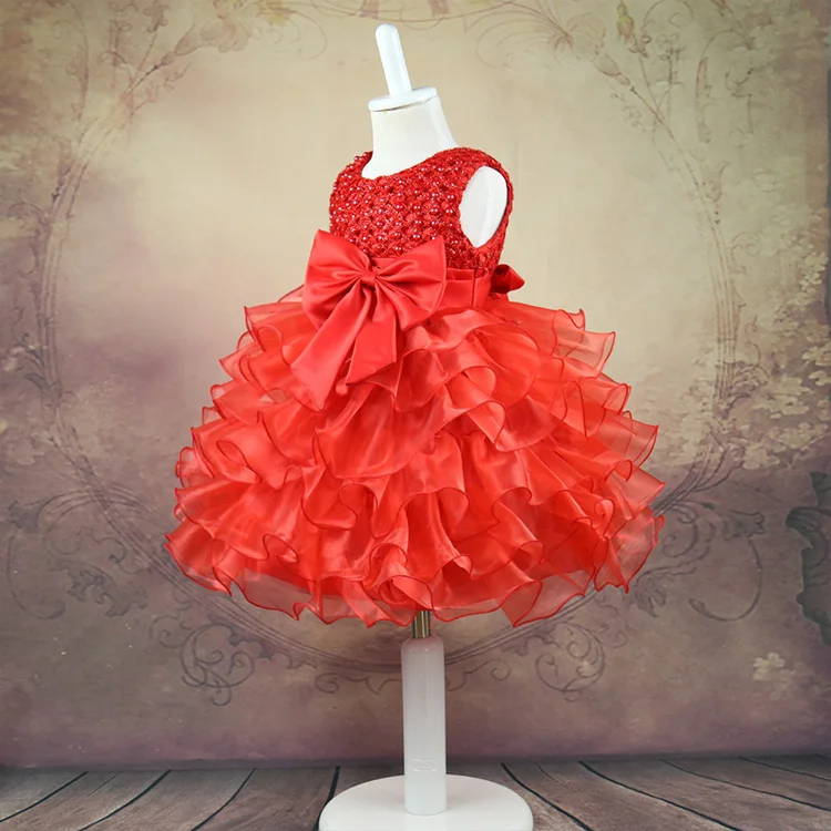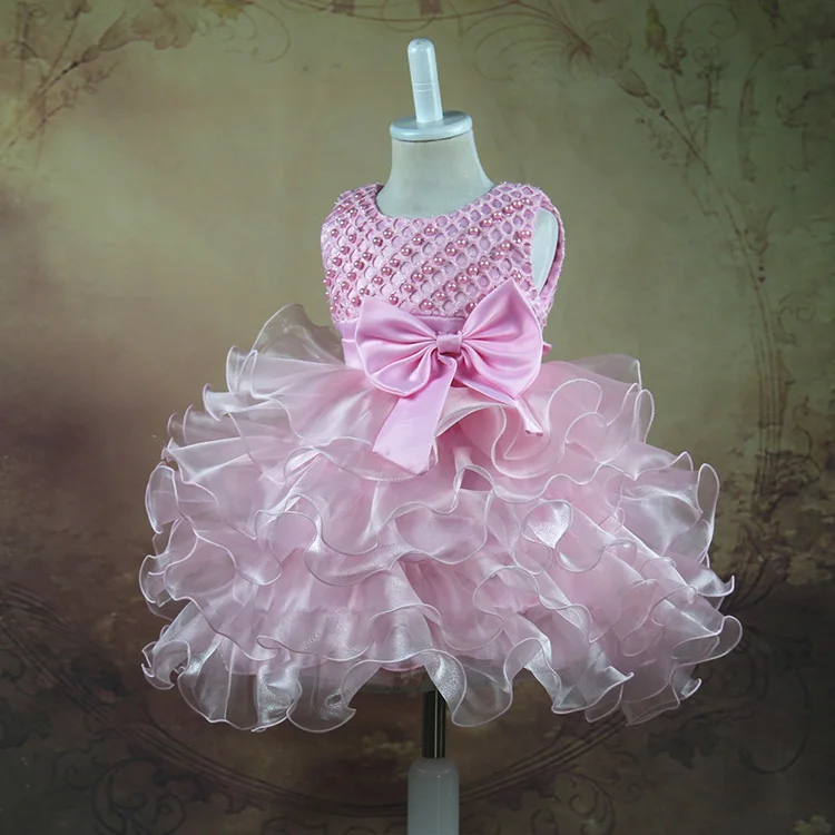 Summer Children Dress Exquisite Girl Fluffy Layered Princess Wedding Dress Bow Flower Performance Cute Dress Clothes for Kids