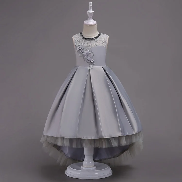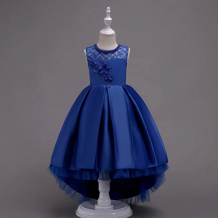 Western Style Princess Dress Clothes for Kids 3-D Embroidered Flower Girl Wedding Gown Satin Lace Formal Frock for Performance