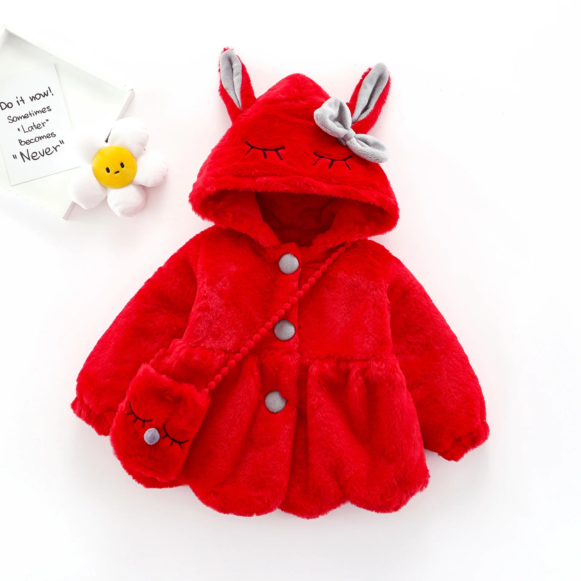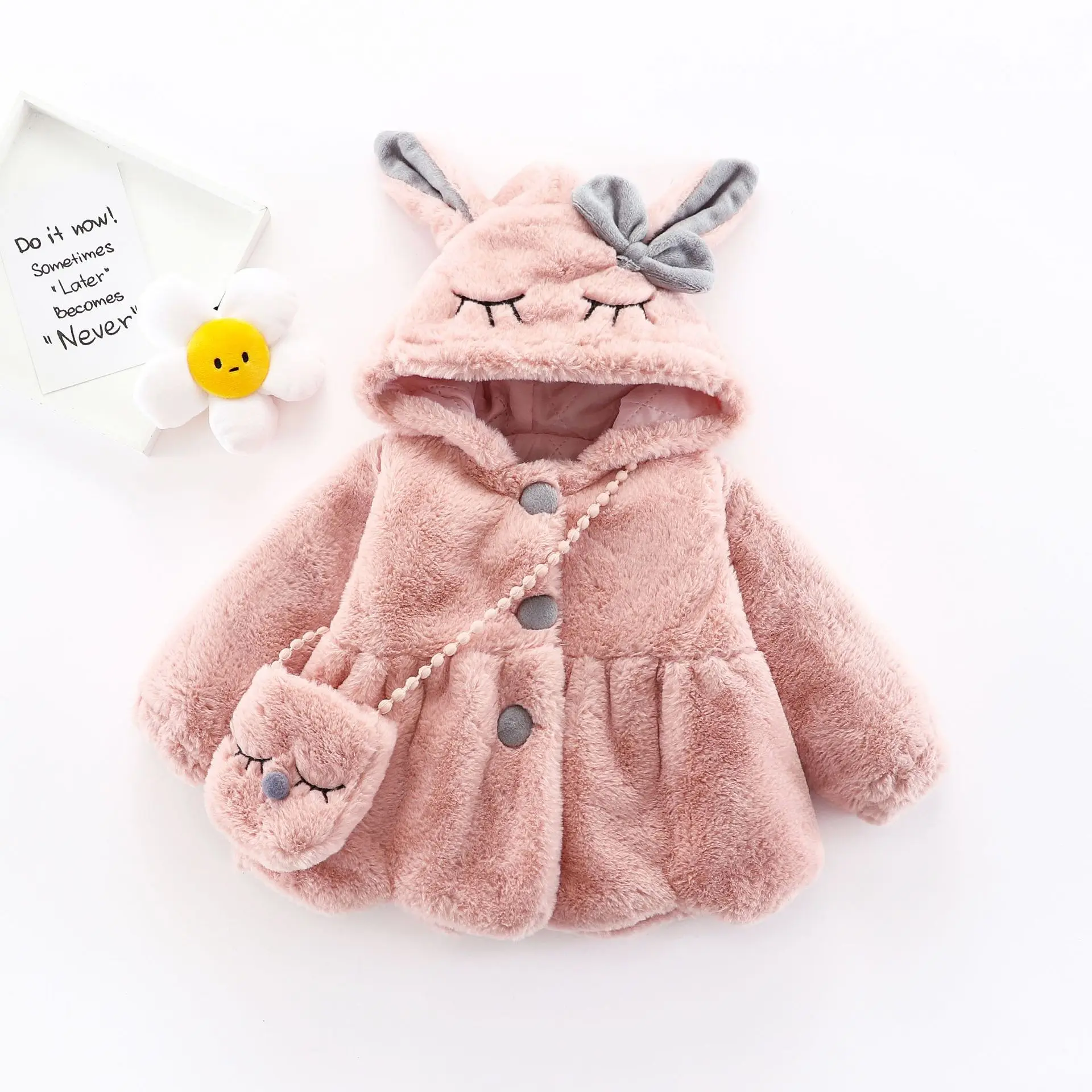 Winter Girls' Sweater Cardigan Coat Children's Cartoon Big Rabbit Ear Coat Gift Rabbit Bag Zipper Closure Clothes for Kids