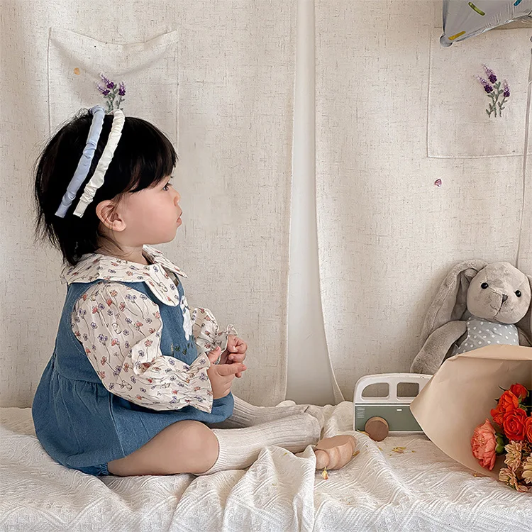 Children's Long Sleeve Top Apparel Customizable Plain Washed Ripped Tee Basic Layering Shirt Multi Colors