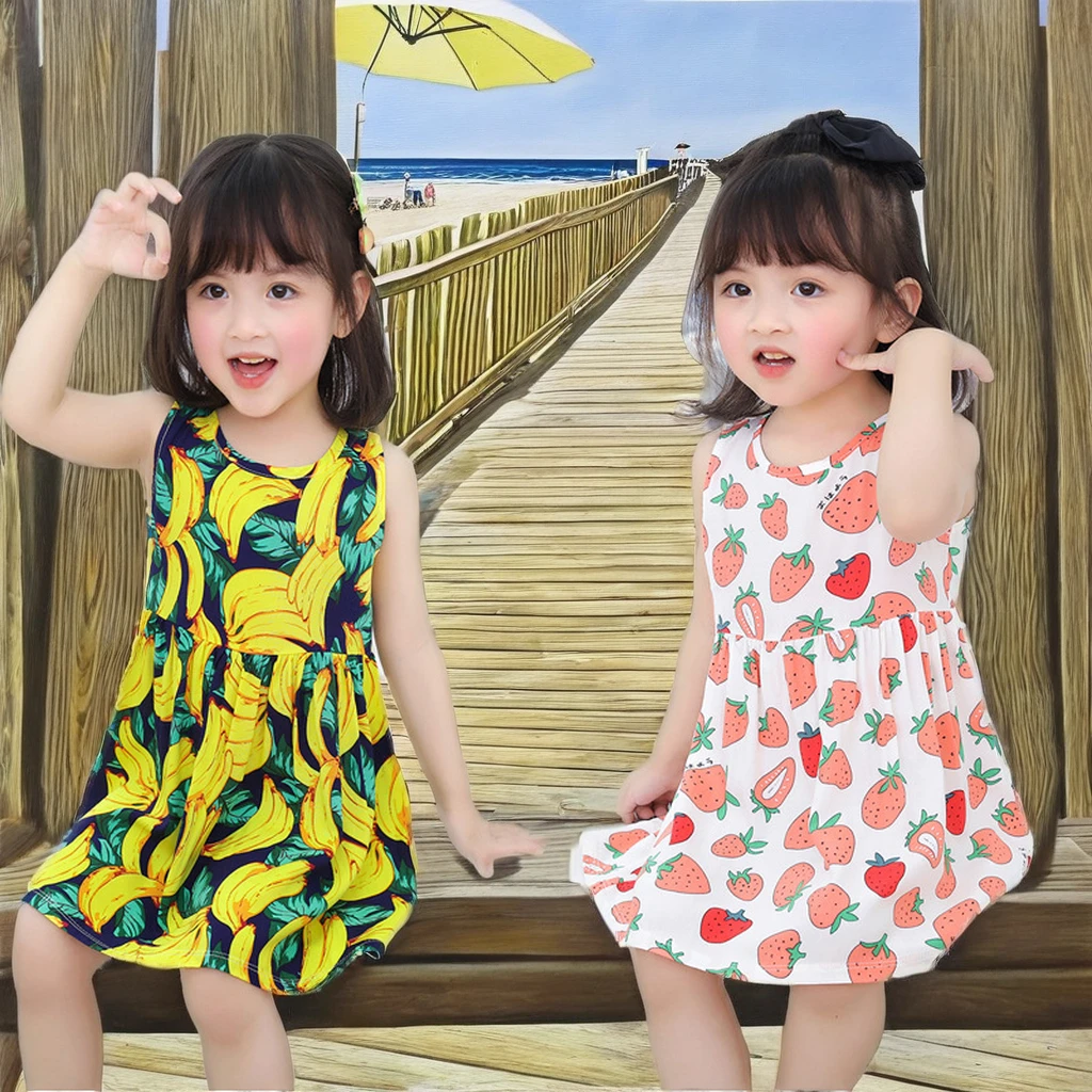 Girls' Sweet Summer Knee-Length Sleeveless Floral Pattern Bohemian Style O-Neck Casual Beach Dresses 0-12 Years Breathable
