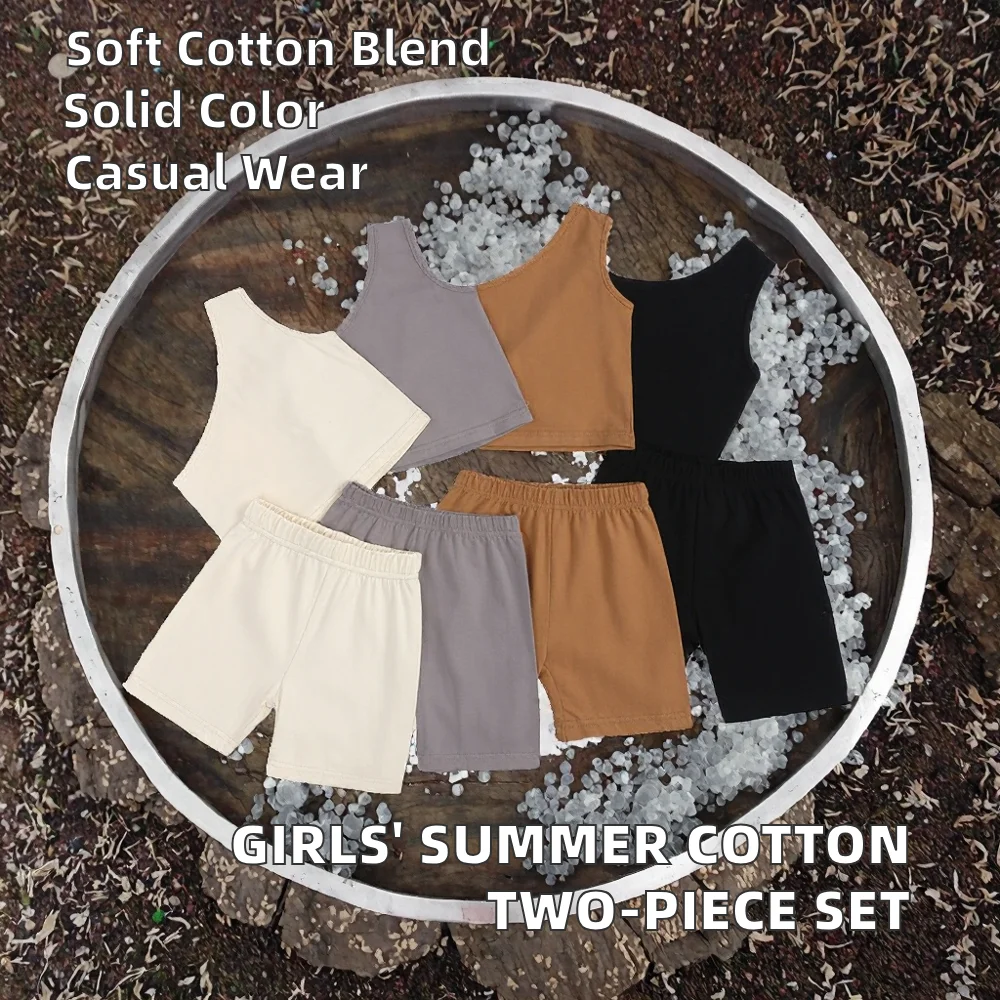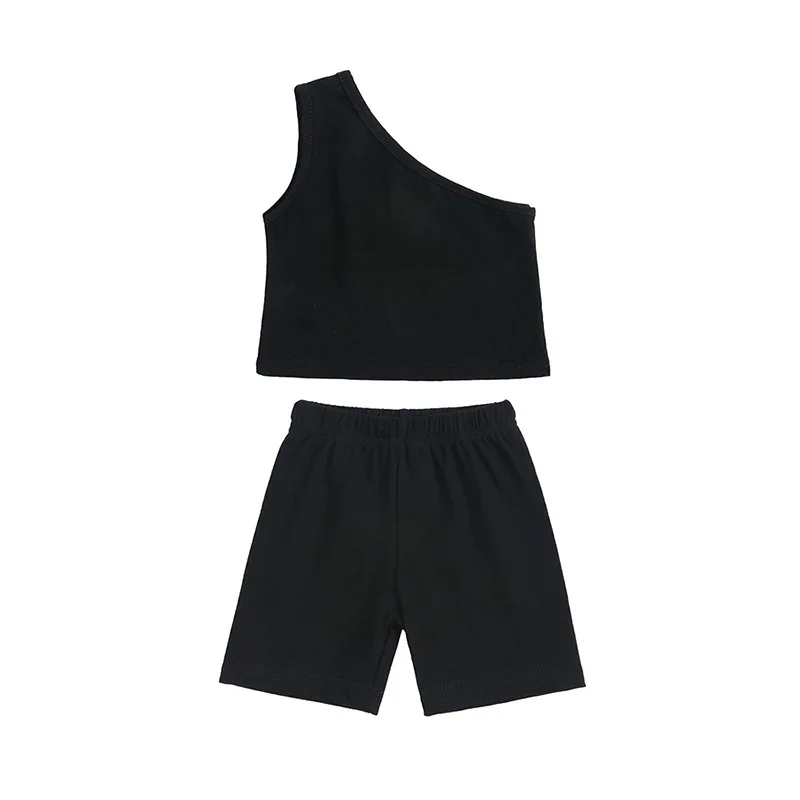 Casual Style Summer Cotton Toddler Girls One-shoulder Halter Top and Shorts Size 2T Two-Piece Set Clothes for Kids