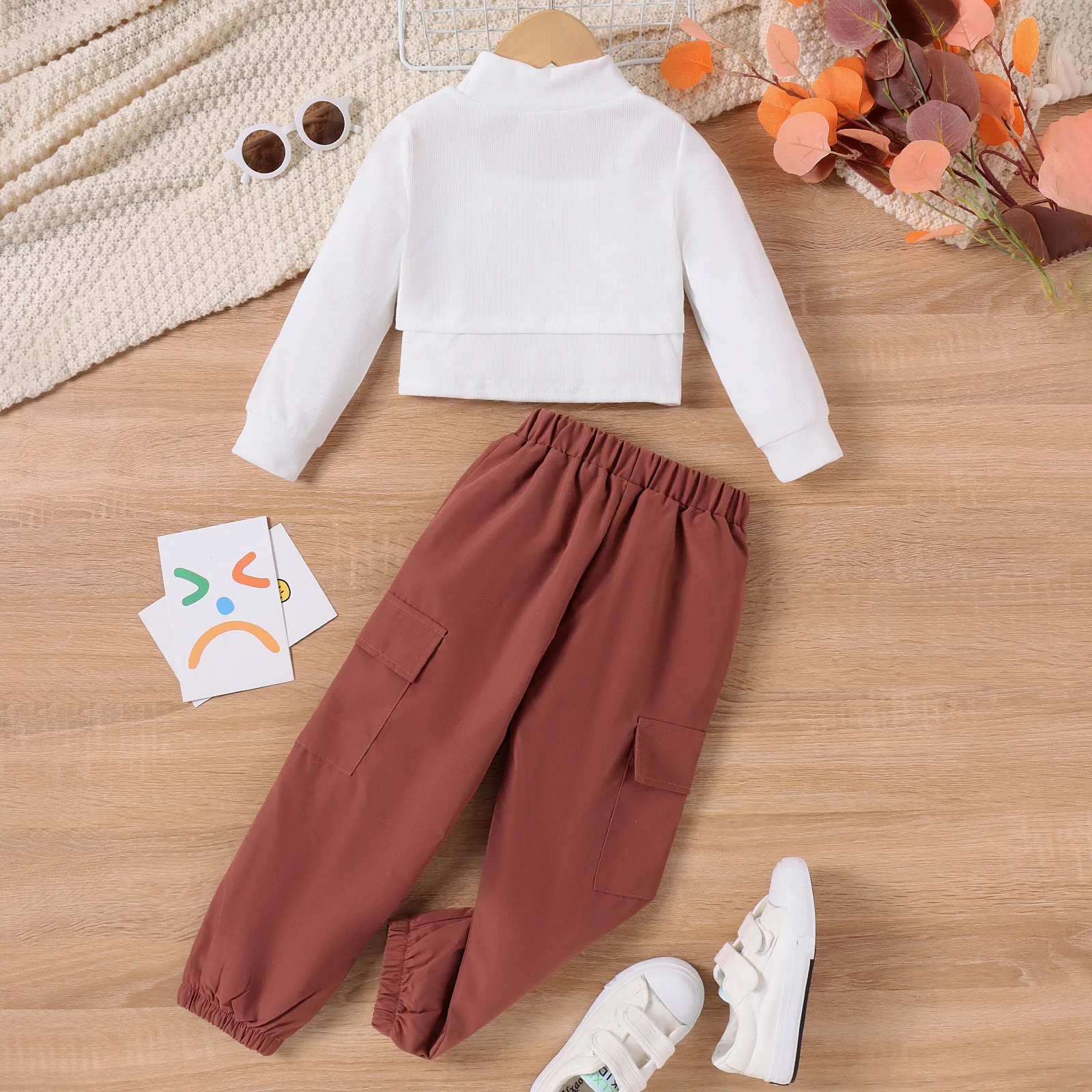 Children's Long Sleeve Top Apparel Customizable Plain Washed Ripped Tee Basic Layering Shirt Multi Colors