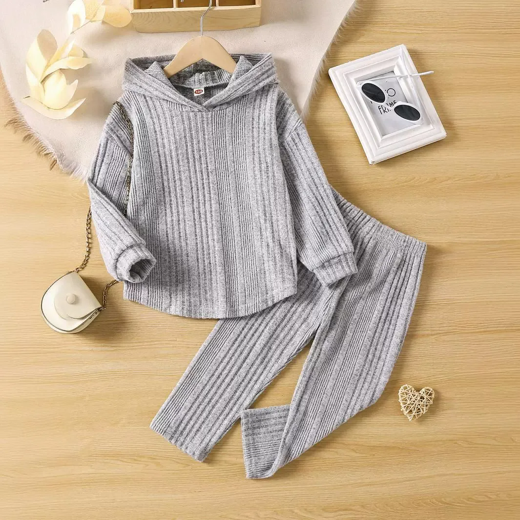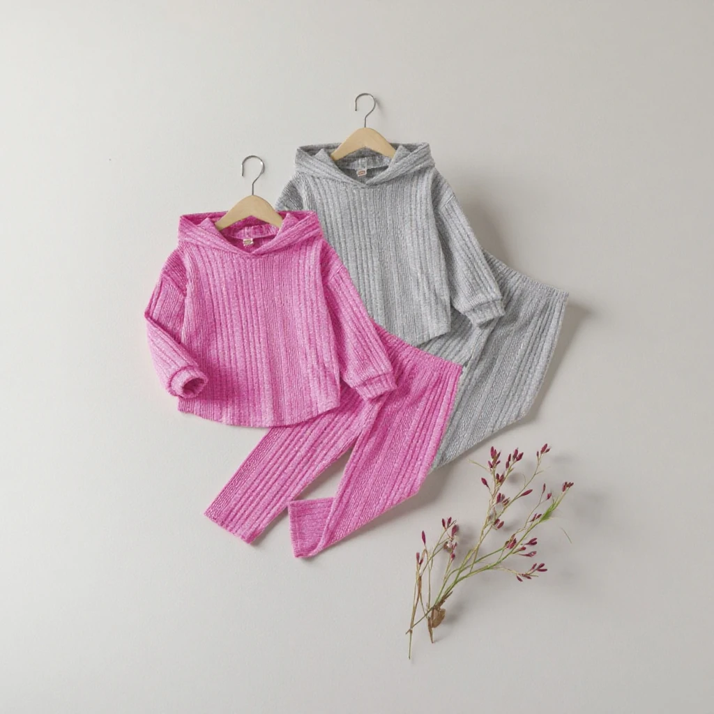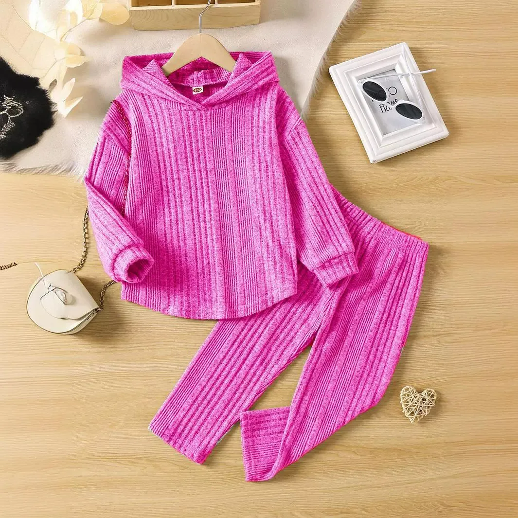 Fall Winter Casual Outfits for Girls Toddler Girl Tee Pant Set Solid Knitted Hoodie Sweater Tops Sweatpants Clothes for Kids