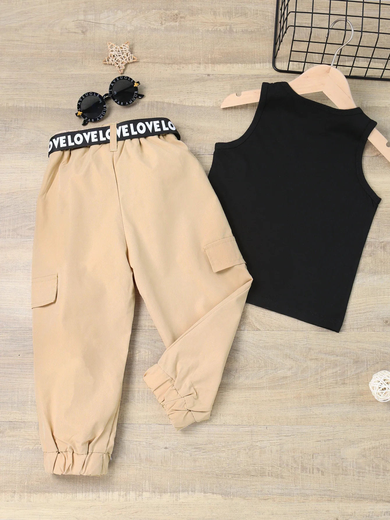 Girls Crop Tops & Worker Pocket Pants Set 2pcs T-Shirt Solid Casual Summer Clothes Kids Ages 8 Polyester/Cotton Knit