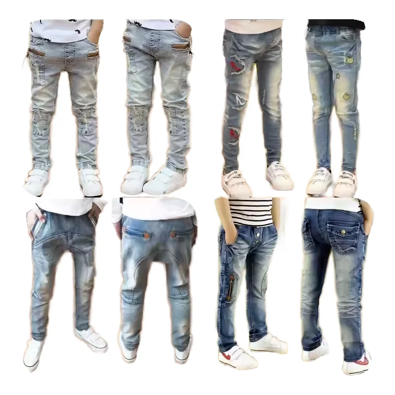 Classic Denim Clothes for Kids 4-13 Years Children Long Straight Pants with Washed Bowboy Decoration Casual Baby Boy Jeans Pants