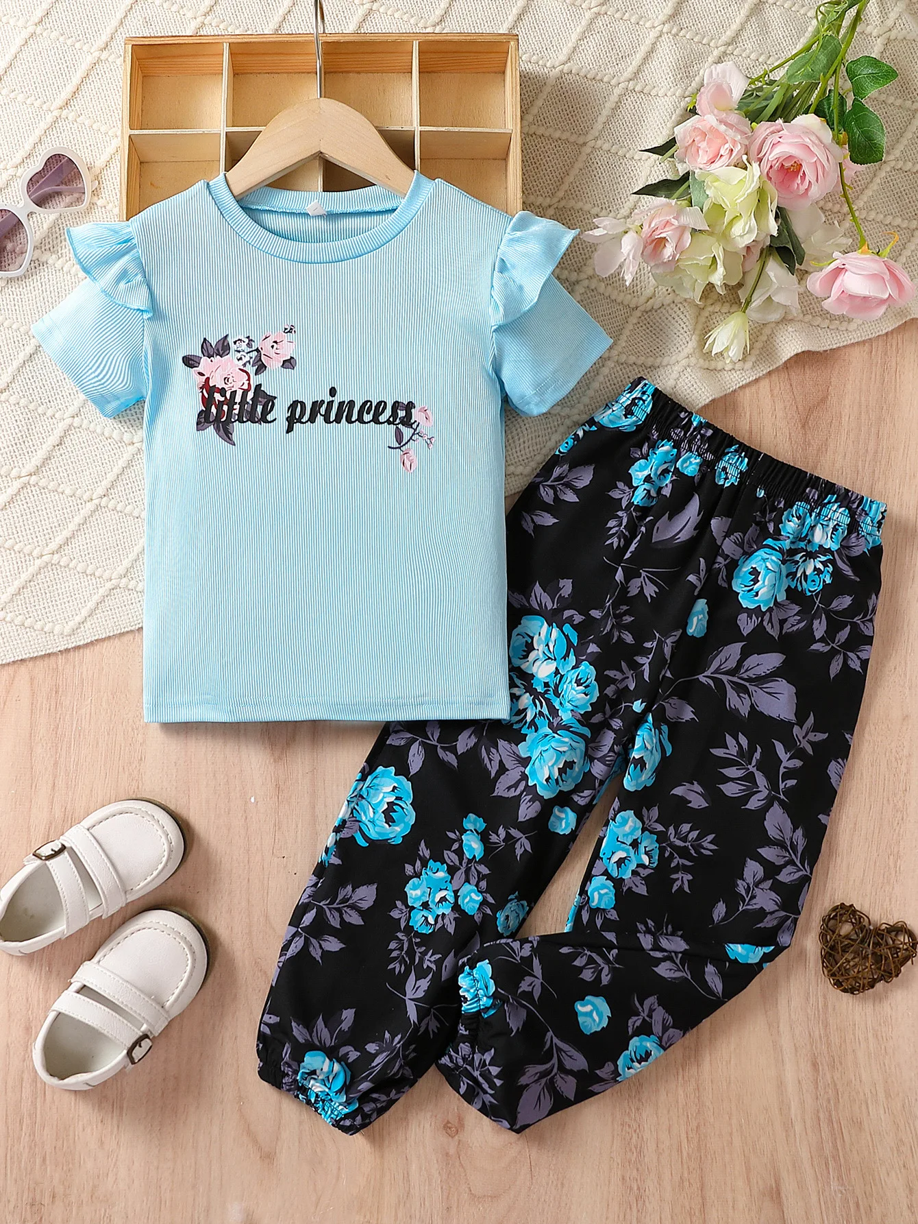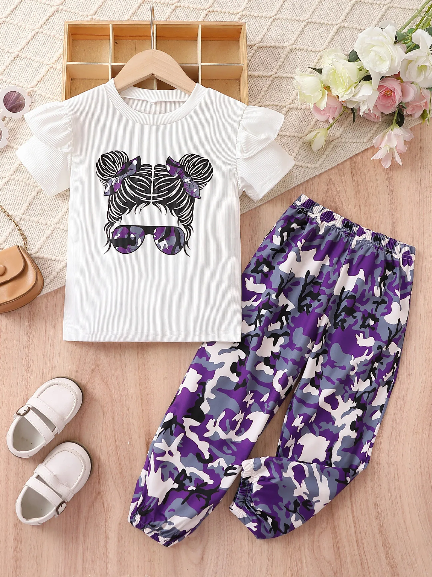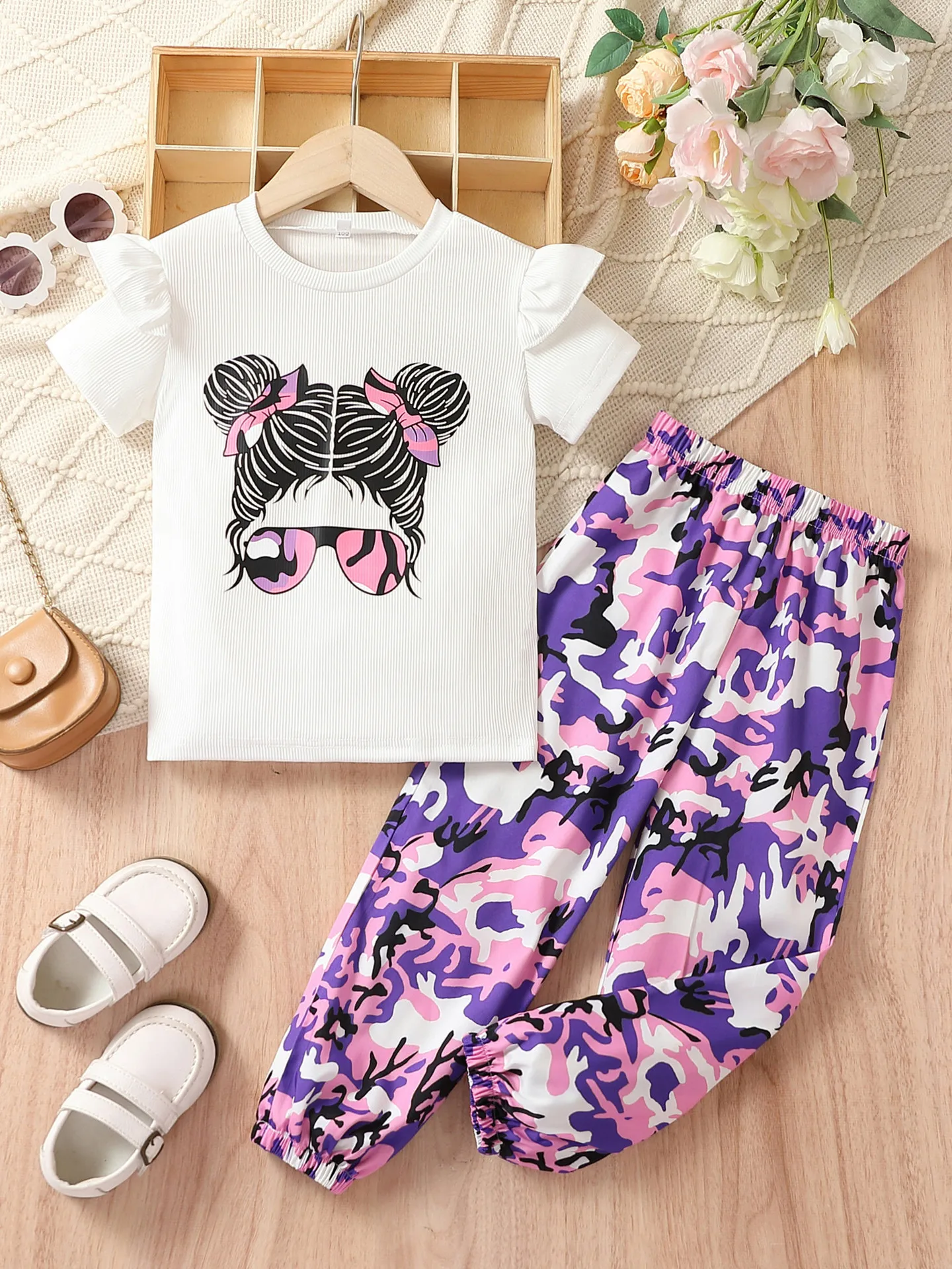 New Arrivals Summer Clothing Figure Graphic T-shirt Dot Wide Legs Pants Girls Set Personality Toddler Girl Clothes for Kids