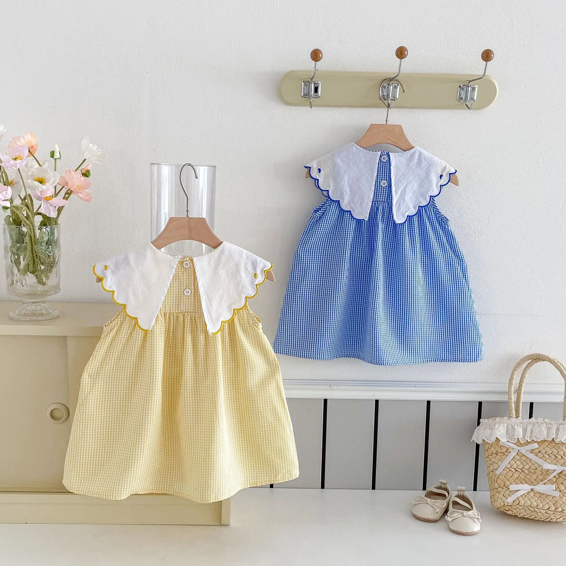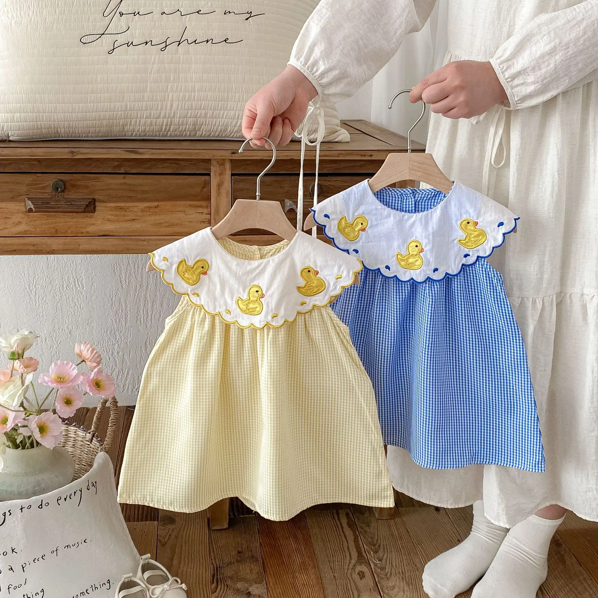 Summer Baby Dresses Girls' Sweet Style Dress with Little Duck Embroidery O-Neck Collar Pattern Decoration Clothes for Kids