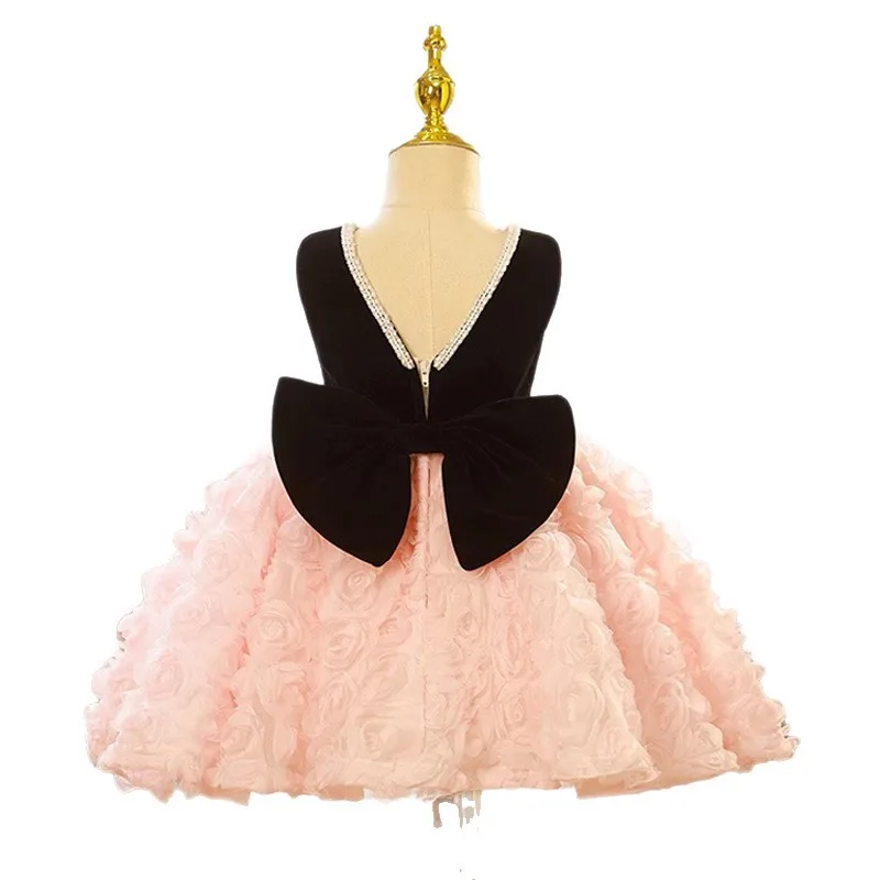 Children Black Top O-neck Frock Design for Baby Girl Ball Gowns Cute 1-14 Years Old Girl Flower Party Dress for Birthday