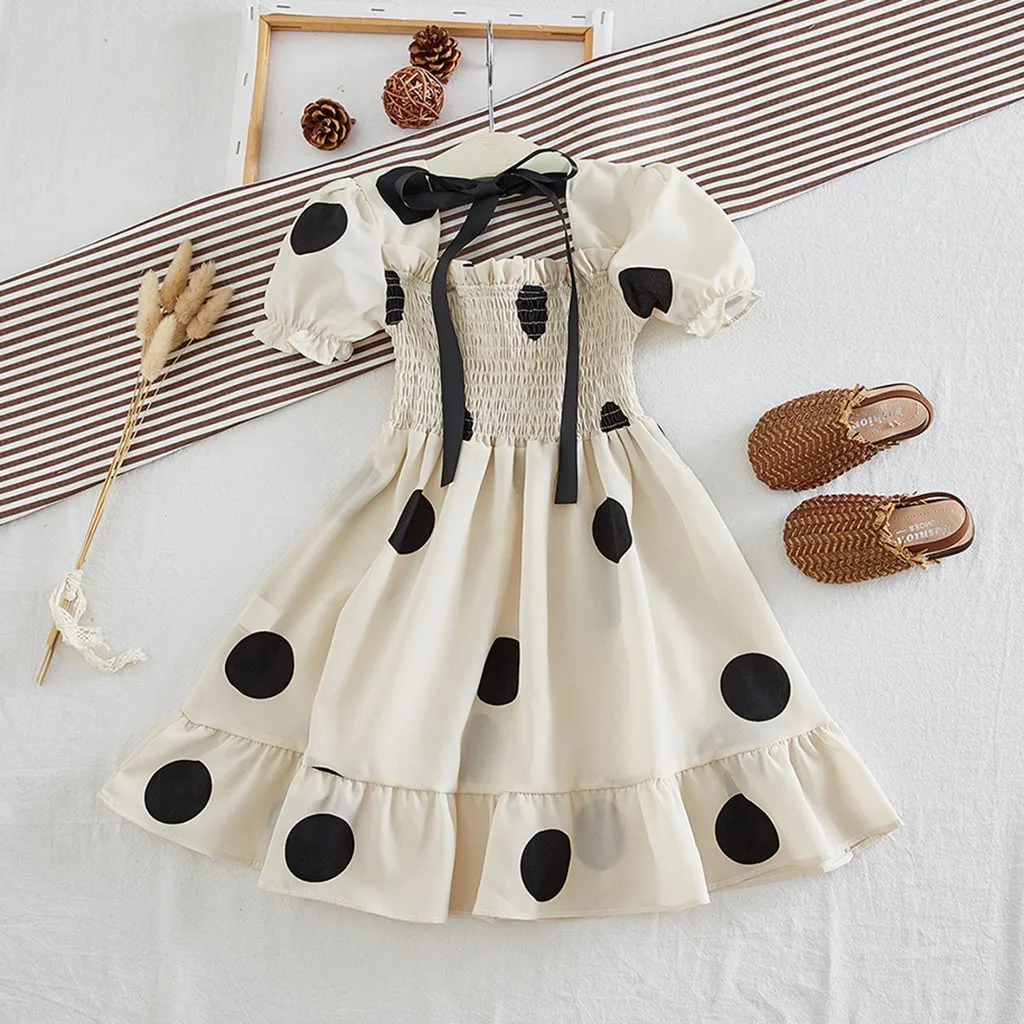 Bohemian Floral Pattern Camisole Dress for Girls European Princess Dress Beading for Children's Party Birthday Clothes for Kids