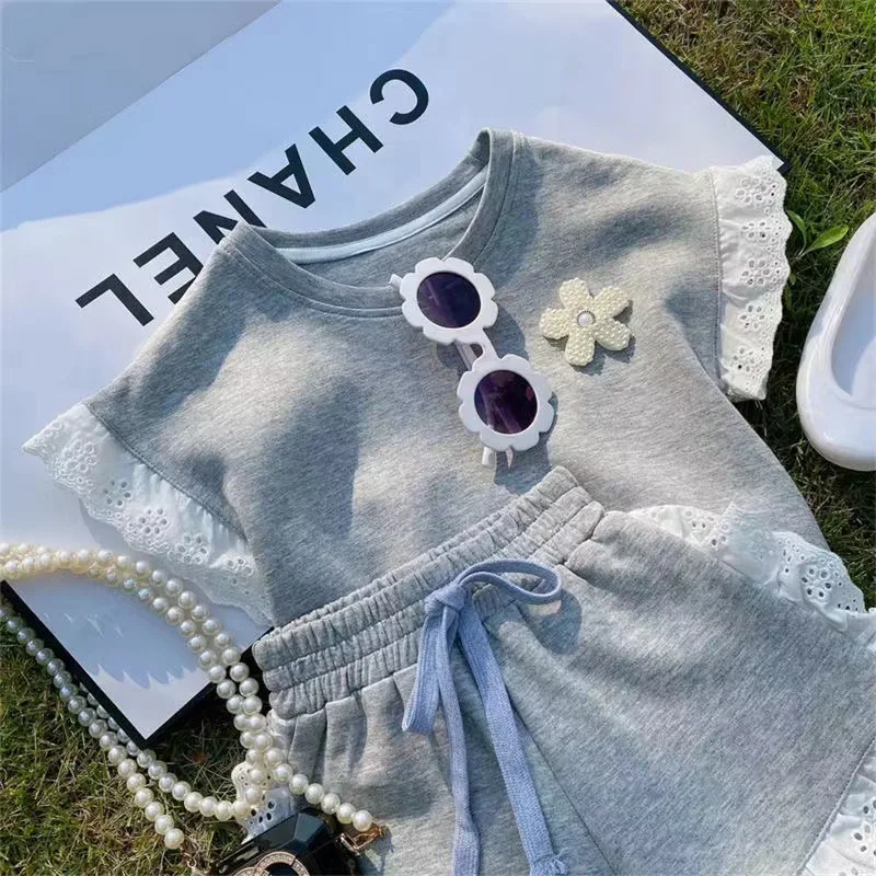 Summer Cotton Half-Sleeved Shorts for Baby Girls Casual Solid Pattern Toddler Split Sets Clothes for Kids