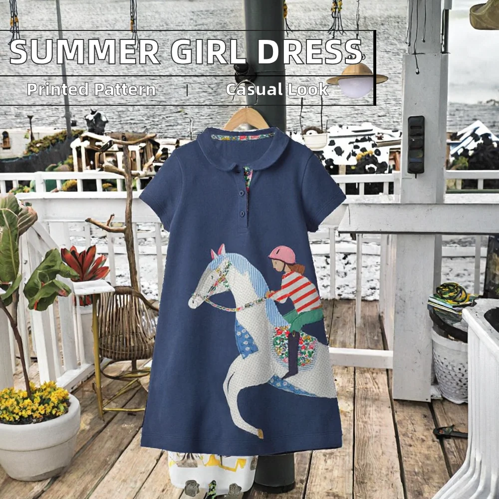 Summer New Style Girls Casual Dress European American Cartoon Button Short-Sleeved for Baby Girl Children's Clothes for Kids