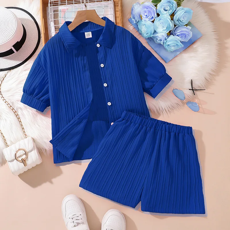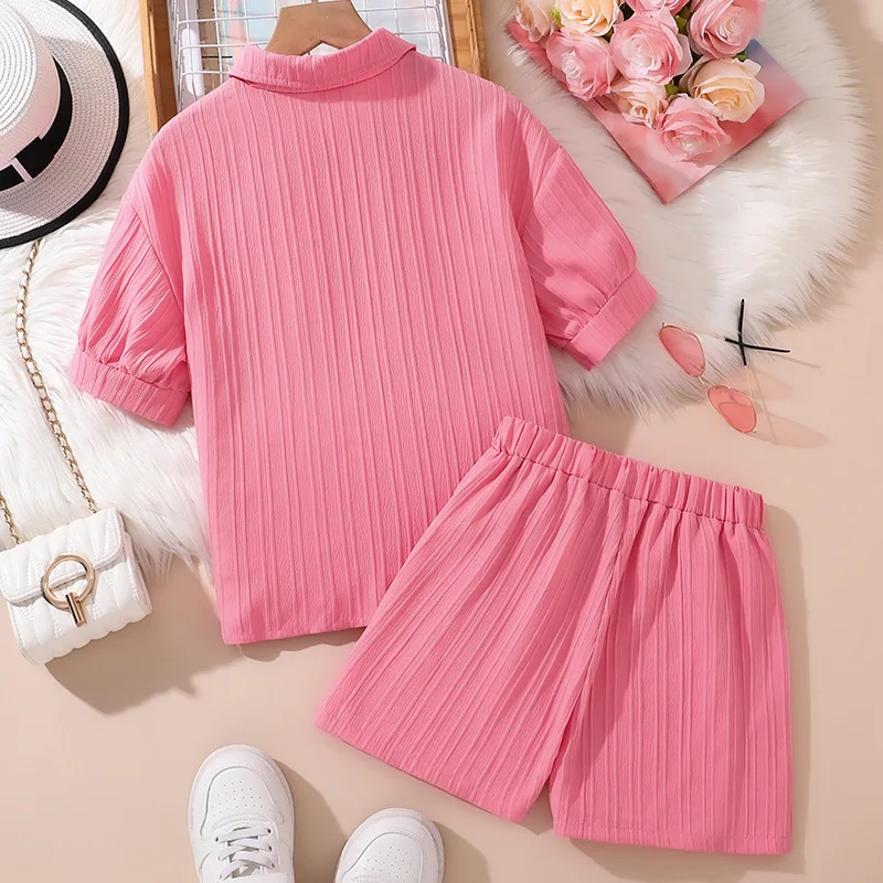 2026 Summer Cotton Girls Clothing Set New Short-Sleeved Shirt Shorts Casual Style with Logo Pattern Children's Clothes for Kids