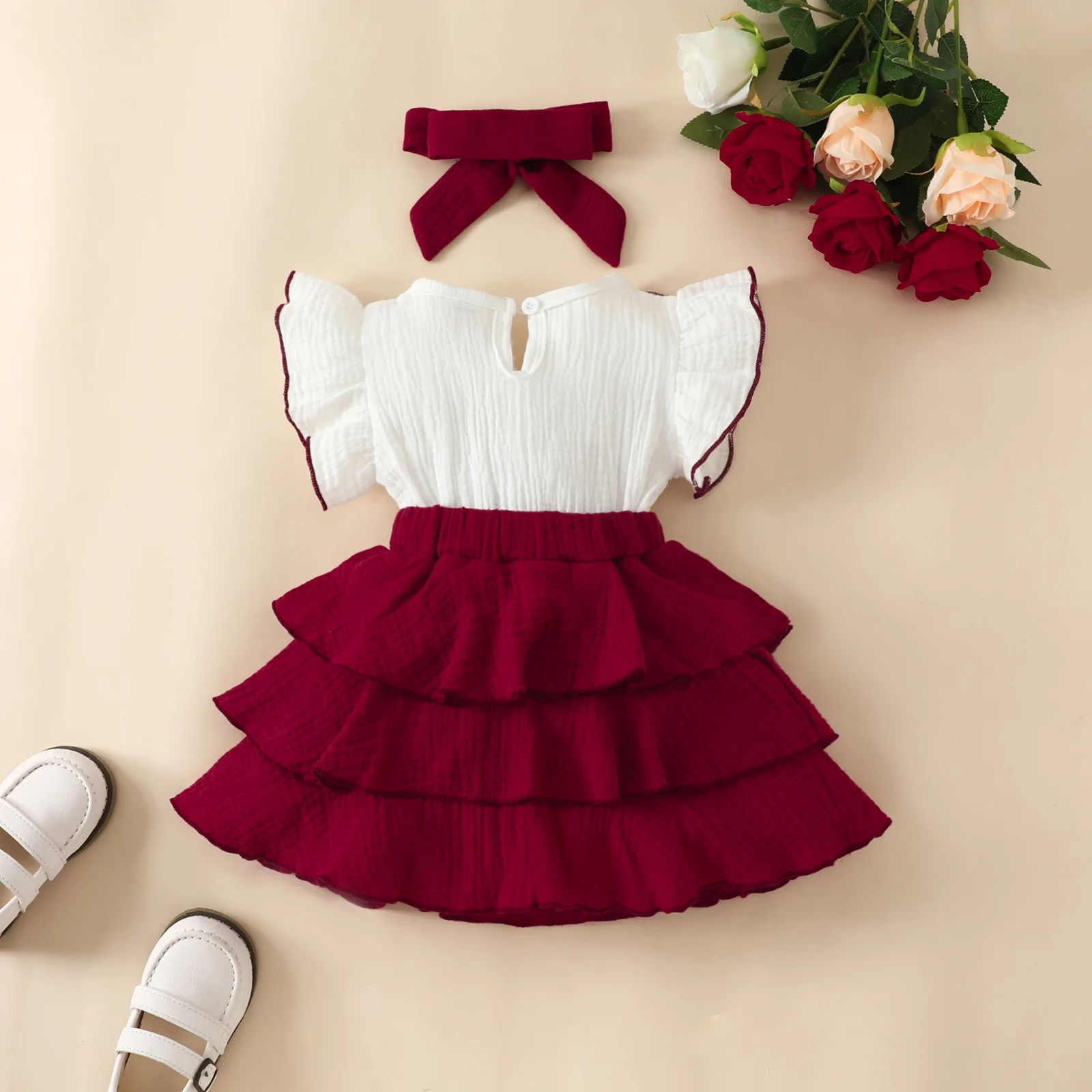 Children's Summer Sweet Satin Ruffled Princess Dress + Headscarf 2-Piece Set for Baby Girls