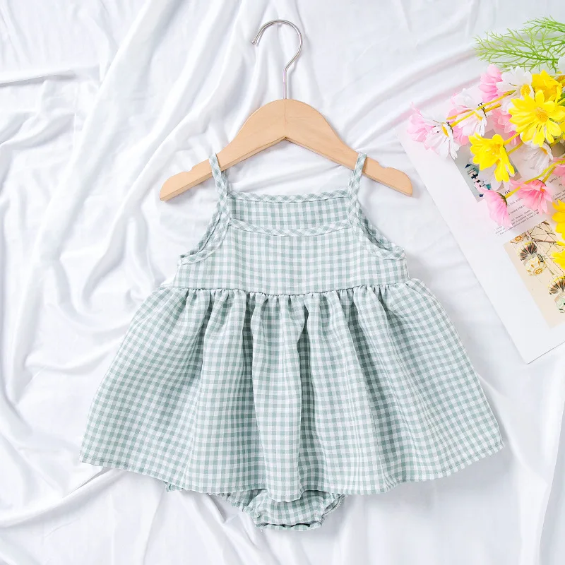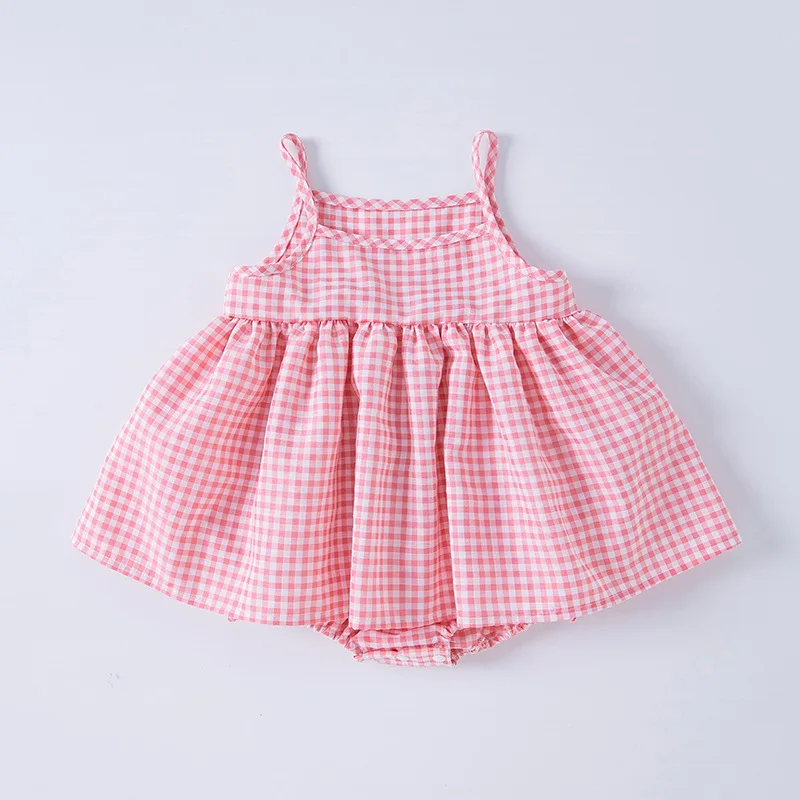Summer Newborn Jumpsuit Casual Plaid Romper Dress for Baby Girls with O-Neck Collar and Pattern Decoration Clothes for Kids