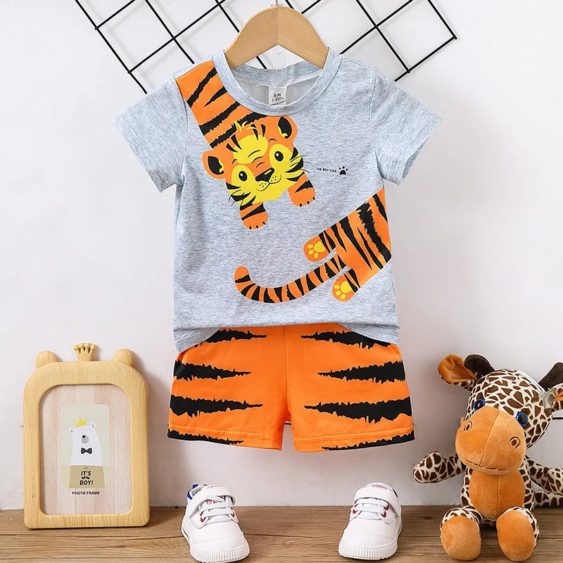 Boy's Casual Summer Short-Sleeved Shorts Suit for Baby Boys Cartoon Class Clothing Set for Children Clothes for Kids