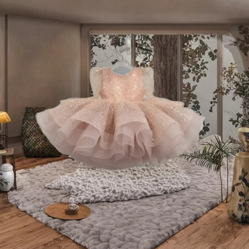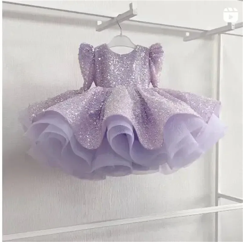 Kids Wear Dress Preppy Princess 3D Glitter Ball Gown Lace Girls Summer Formal Mini Puffy Party