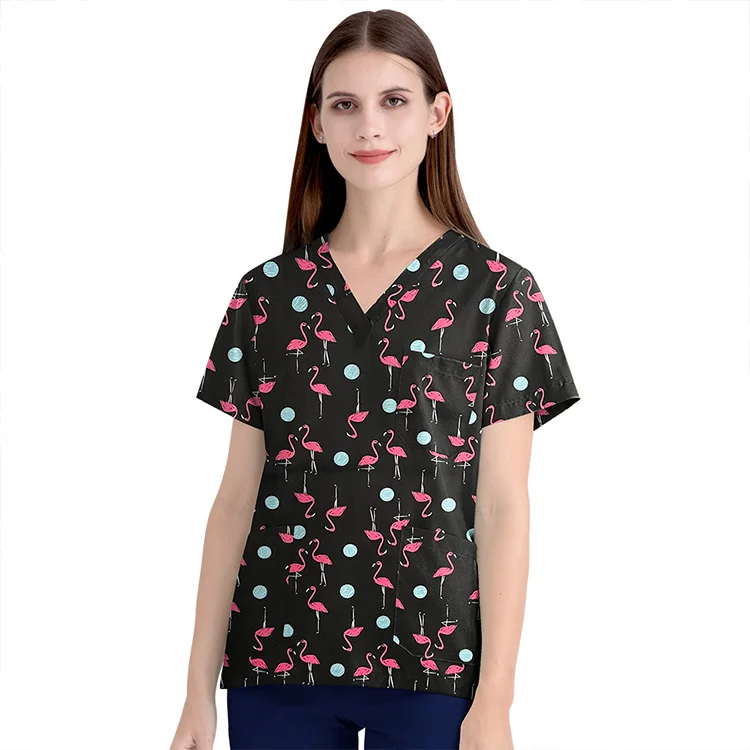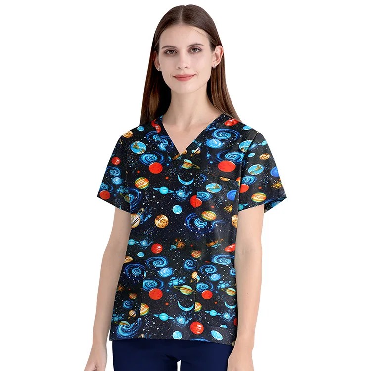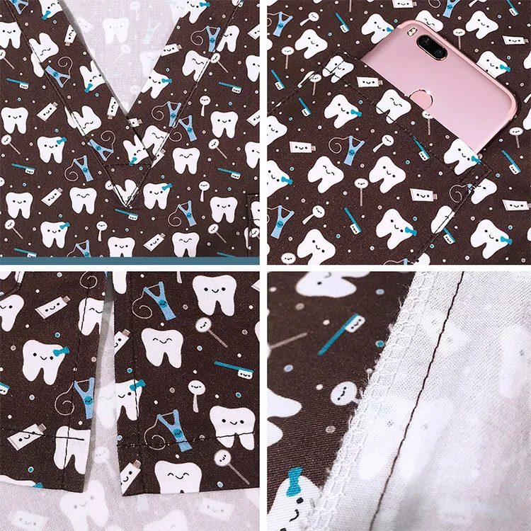 100% Cotton Men Women Medical Scrub Printed Surgical Uniforms V Neck Printed Top Shirt Nurse Uniform uniforme de enfermera