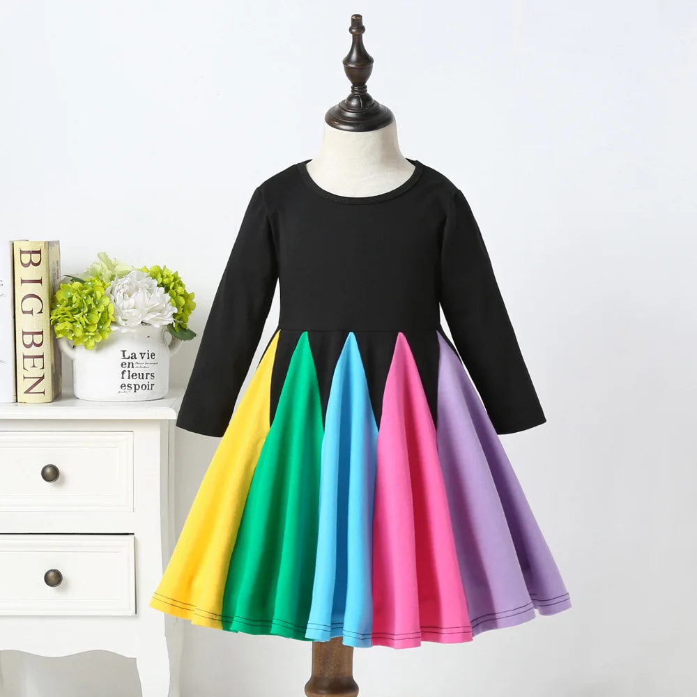 O-Neck Party Dresses Casual Style Baby Frock Fall 2-6 Years Old Girl's Rainbow Gown for Birthday Celebrations Clothes for Kids