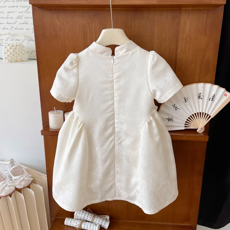Summer Short Sleeve Princess Dresses for Girls Chinese Style Clothes for Kids Floral Pattern Appliques for Children