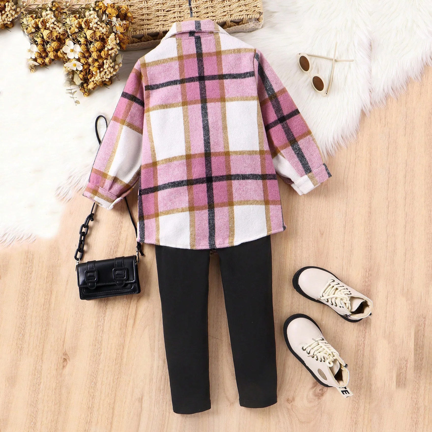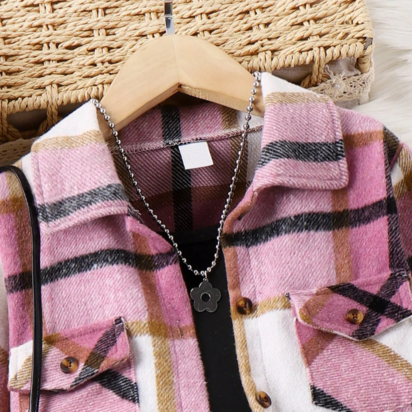 Comfortable Girl Clothing Set Solid Color Cotton Suspender Jumpsuit with Plaid Shirt Jacket Casual Style Clothes for Kids