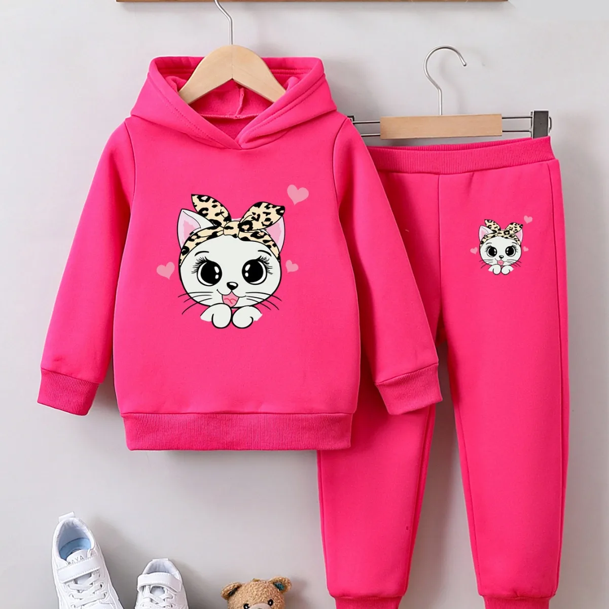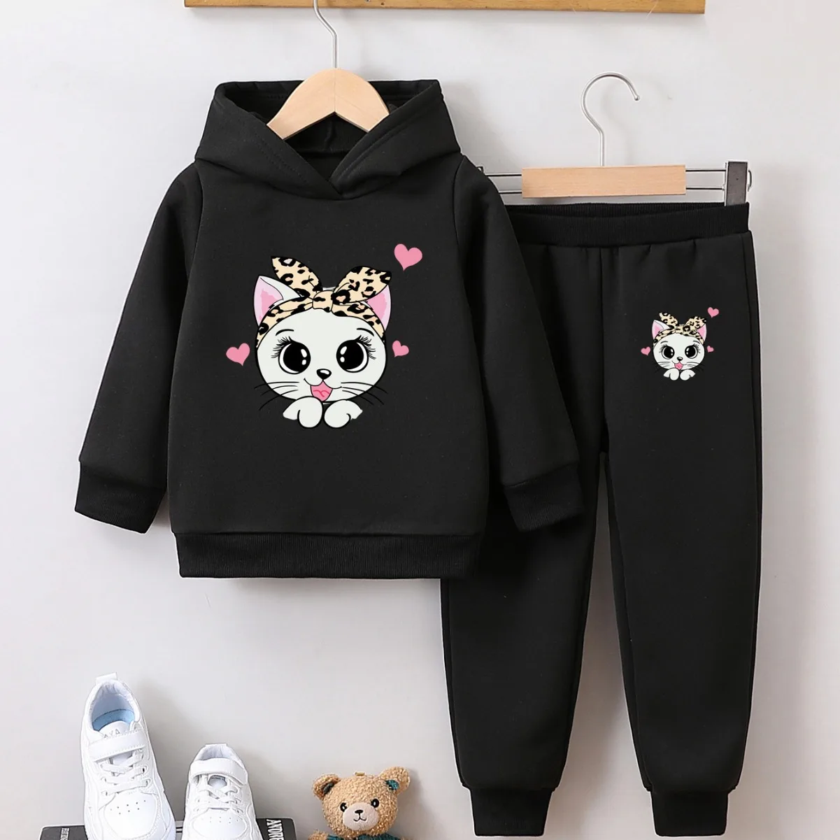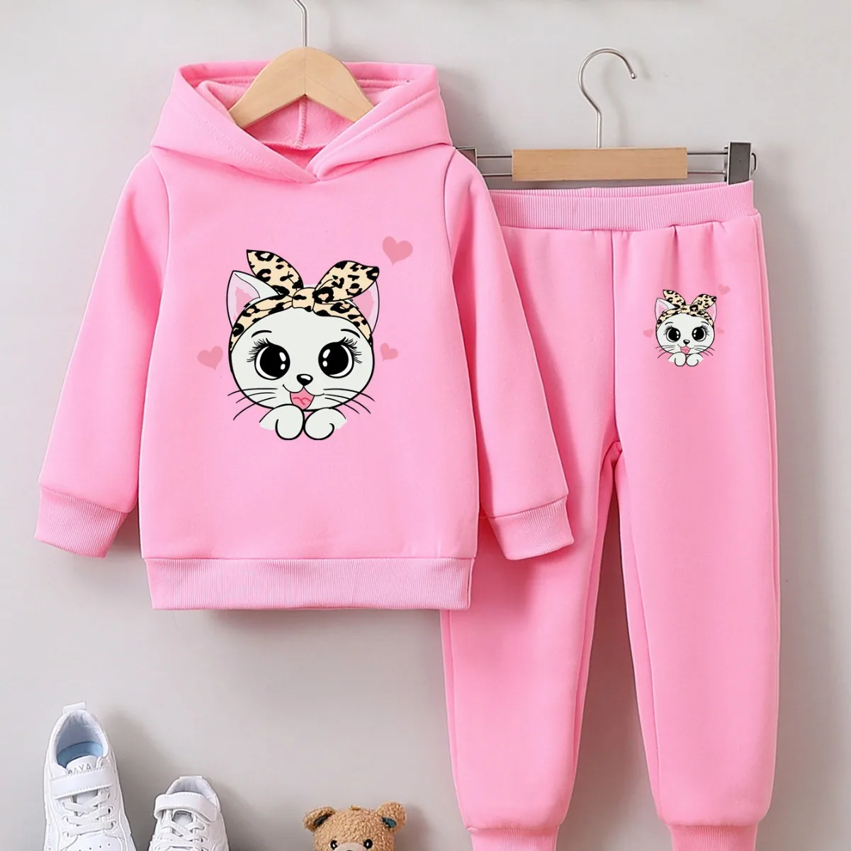 Autumn Winter Casual Toddler Girls Tracksuit Set Long Sleeve Hooded Top & Trousers with Cartoon Print 2pcs Clothes for Kids