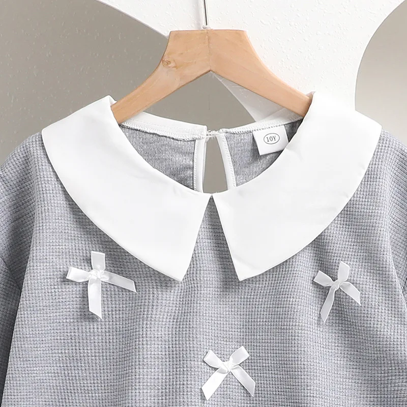 Autumn Girls' Fashion Bow Sweatshirt Pleated Short Skirt New Korean Style Casual Worested Fabric 8-12Years Clothes for Kids