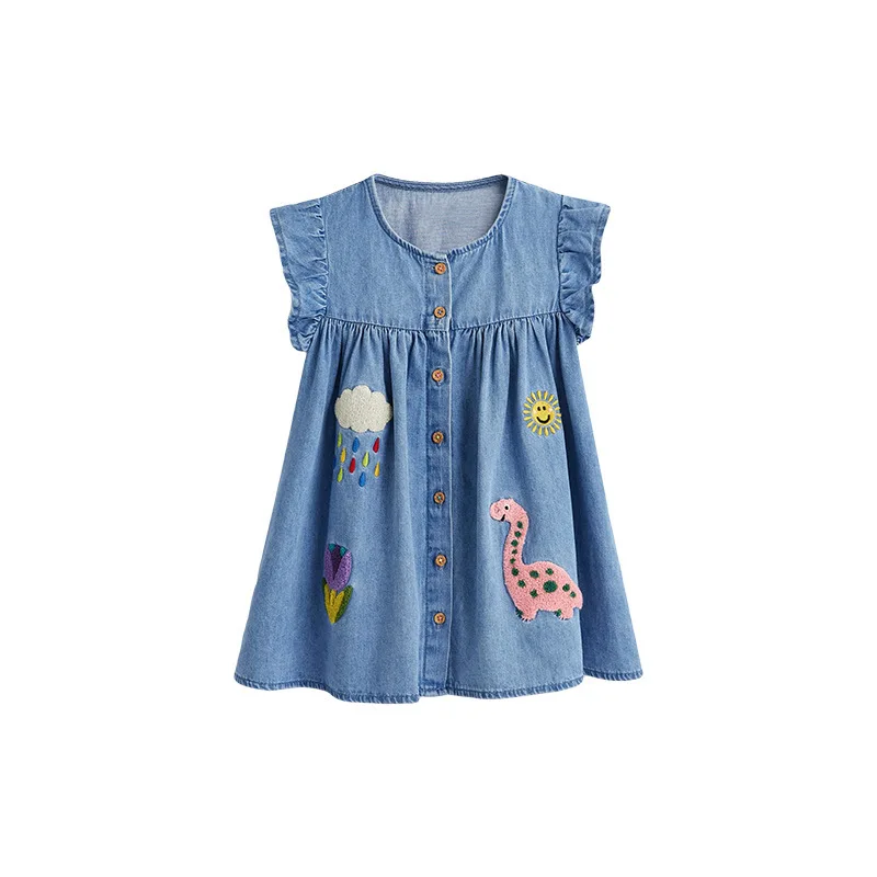 Girls' Children Summer Casual Short-Sleeved Eco-friendly A-line Denim Skirt European American Style Patch Embroidered Cartoon