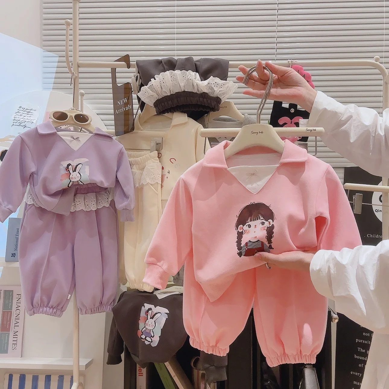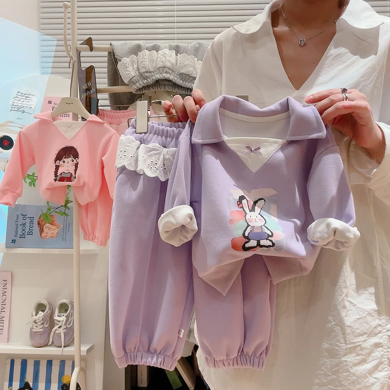 Girls' Denim Solid Casual Sports Jogger Pants Spring/Autumn New Style Loose Cuffed Wide Leg 2 Pieces Sets Clothes