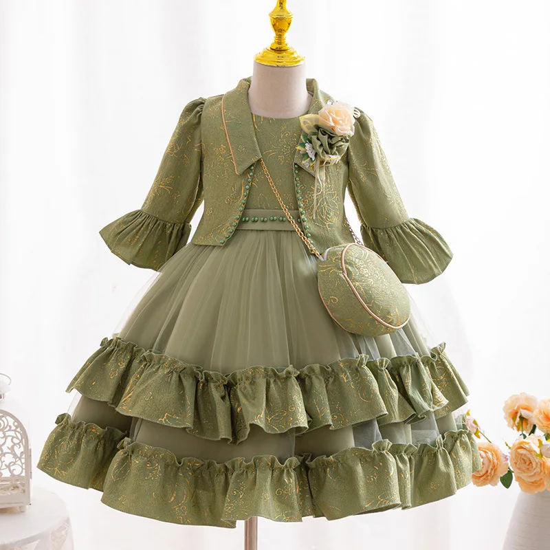 Elegant Floral Satin New Baby Children Princess Dress Girls Evening Dress for Birthday Party Performance Clothes for Kids